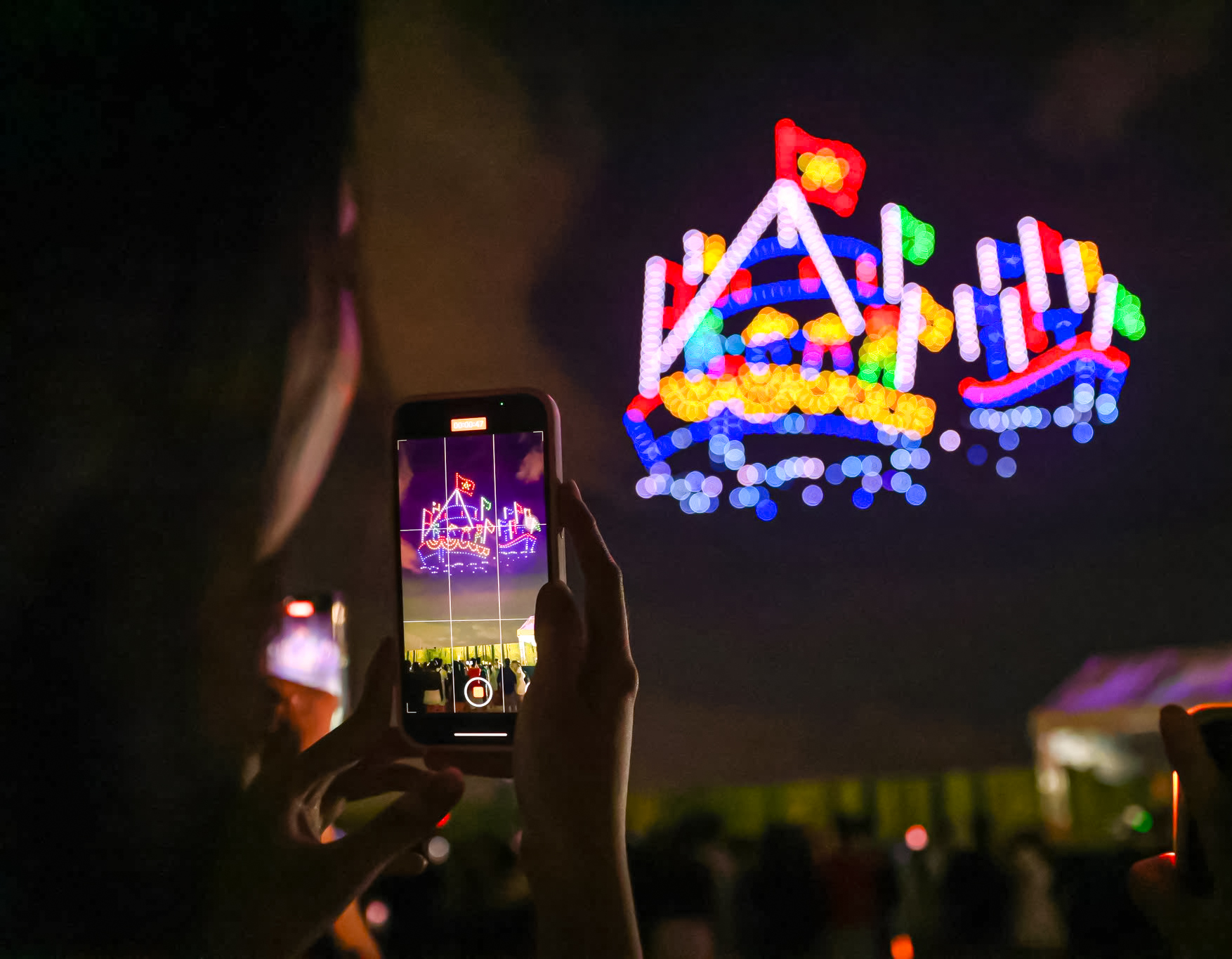 Khán giả lưu lại khoảnh khắc đáng nhớ cùng với màn trình diễn 1.000 drone tại đại nhạc hội Khơi mạch nguồn Di sản – Vững bước Kỷ nguyên mới. Sự kiện do T&T Group tổ chức nhằm hướng tới Kỷ niệm 80 năm Cách mạng tháng Tám và Quốc khánh 2/9.