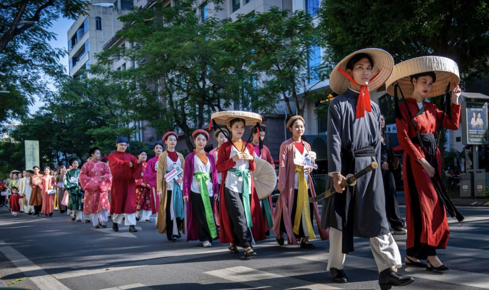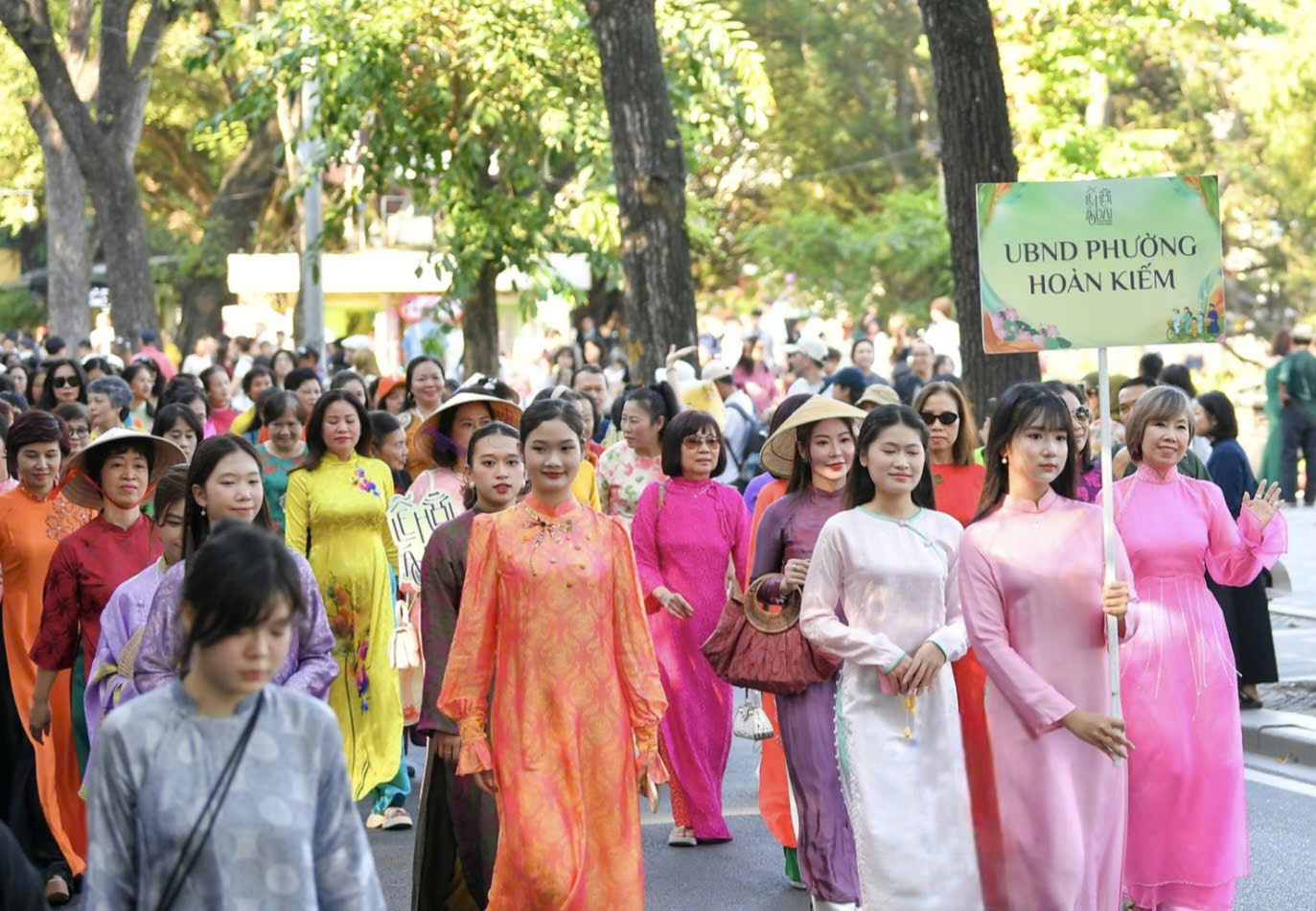 Hoạt động diễu hành áo dài trở thành “điểm nhấn hình ảnh” của Lễ hội Áo dài, thu hút số lượng lớn người dân và du khách quốc tế dừng chân chiêm ngưỡng, chụp ảnh.