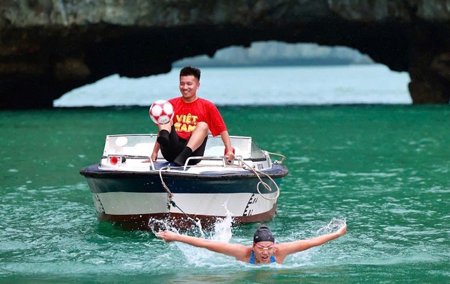 Ánh Viên, Đỗ Kim Phúc lập kỷ lục giữa kỳ quan vịnh Hạ Long. Ảnh: BTC