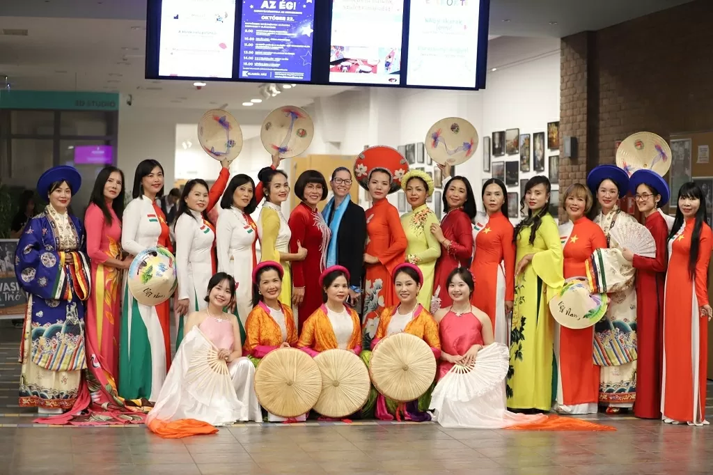 Hội Phụ nữ Việt Nam tại Hungary phối hợp Câu lạc bộ Di sản Áo dài Việt Nam tại Hungary tổ chức chương trình trình diễn áo dài và trang phục truyền thống Việt Nam, mở đầu cho buổi hòa nhạc của nghệ sĩ opera nổi tiếng thế giới Miklósa Erika.