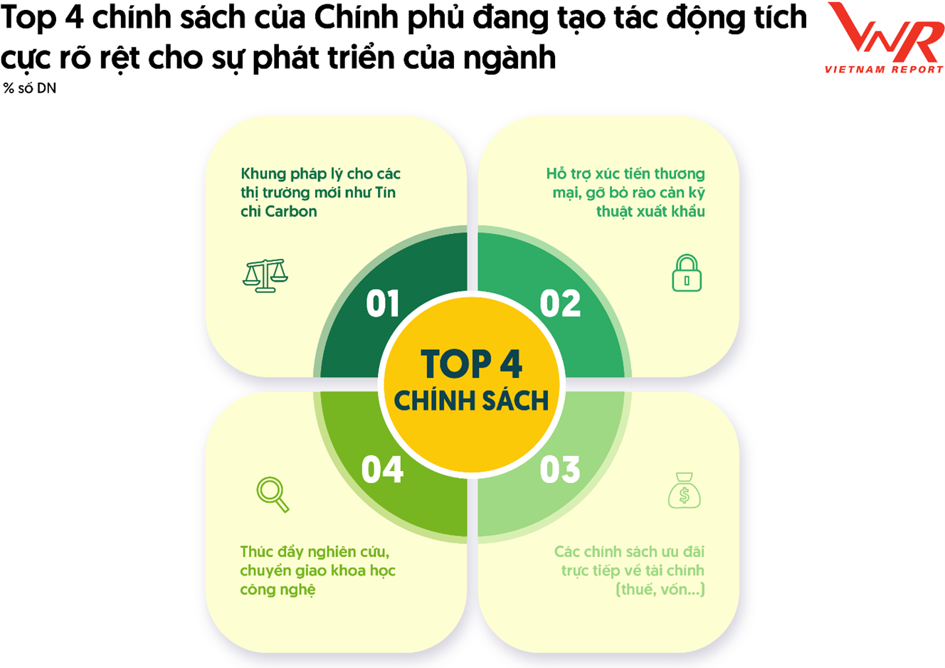 Ngoài ra, thị trường tín chỉ carbon đang nổi lên như một cơ hội mới, biến cam kết phát triển bền vững (ESG) thành doanh thu trực tiếp. Khảo sát của Vietnam Report cho thấy một con số rất ấn tượng: 72,73% doanh nghiệp hàng đầu cho biết họ đã có chiến lược ESG toàn diện và đang tích cực triển khai, cho thấy cam kết mạnh mẽ và sự trưởng thành trong tư duy phát triển bền vững. Trong bối cảnh đó, thị trường tín chỉ carbon đang nổi lên như một cơ hội mới để biến cam kết ESG thành doanh thu trực tiếp.