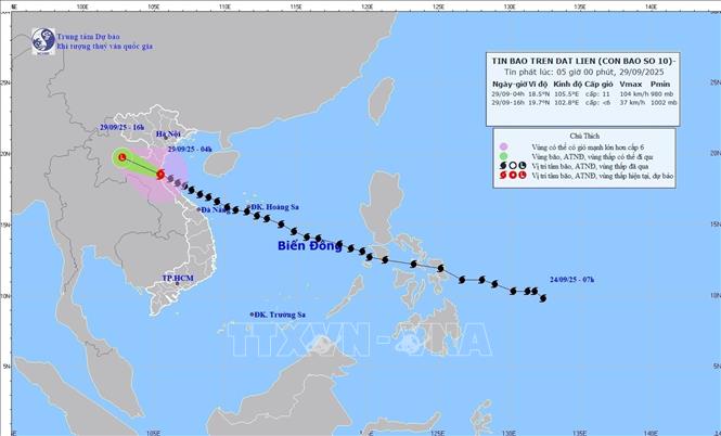 Trong 12 giờ qua (từ 22 giờ ngày 28/9 đến 10 giờ ngày 29/9), khu vực các tỉnh Lào Cai, Sơn La, Phú Thọ và Quảng Ninh đã có mưa vưa, có nơi mưa to như: Tà Si Láng 192,2mm (Lào Cai); Km46 154,8mm (Sơn La); Vạn Mai 240,2mm (Phú Thọ); Kỳ Thượng 146mm (Quảng Ninh); ...