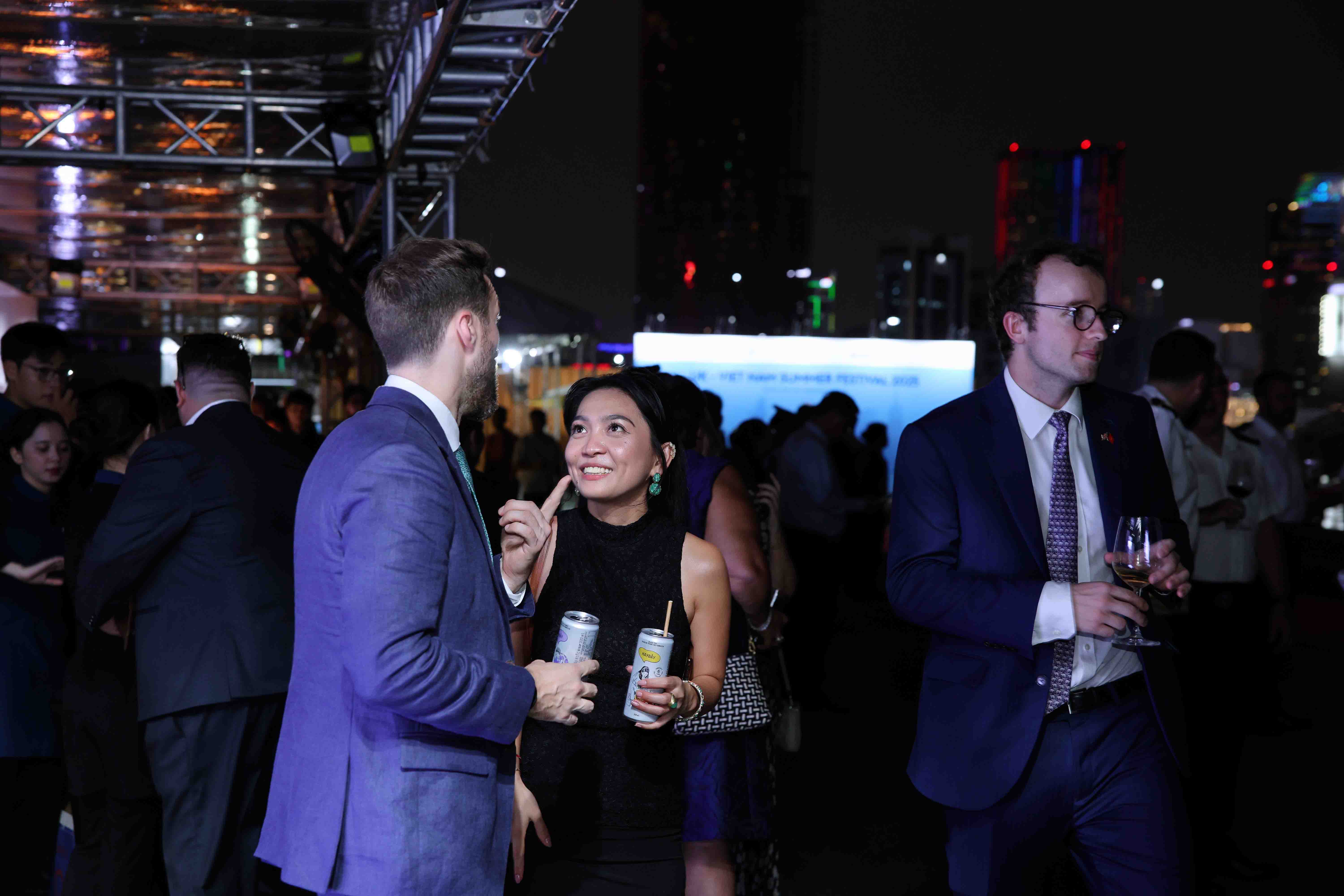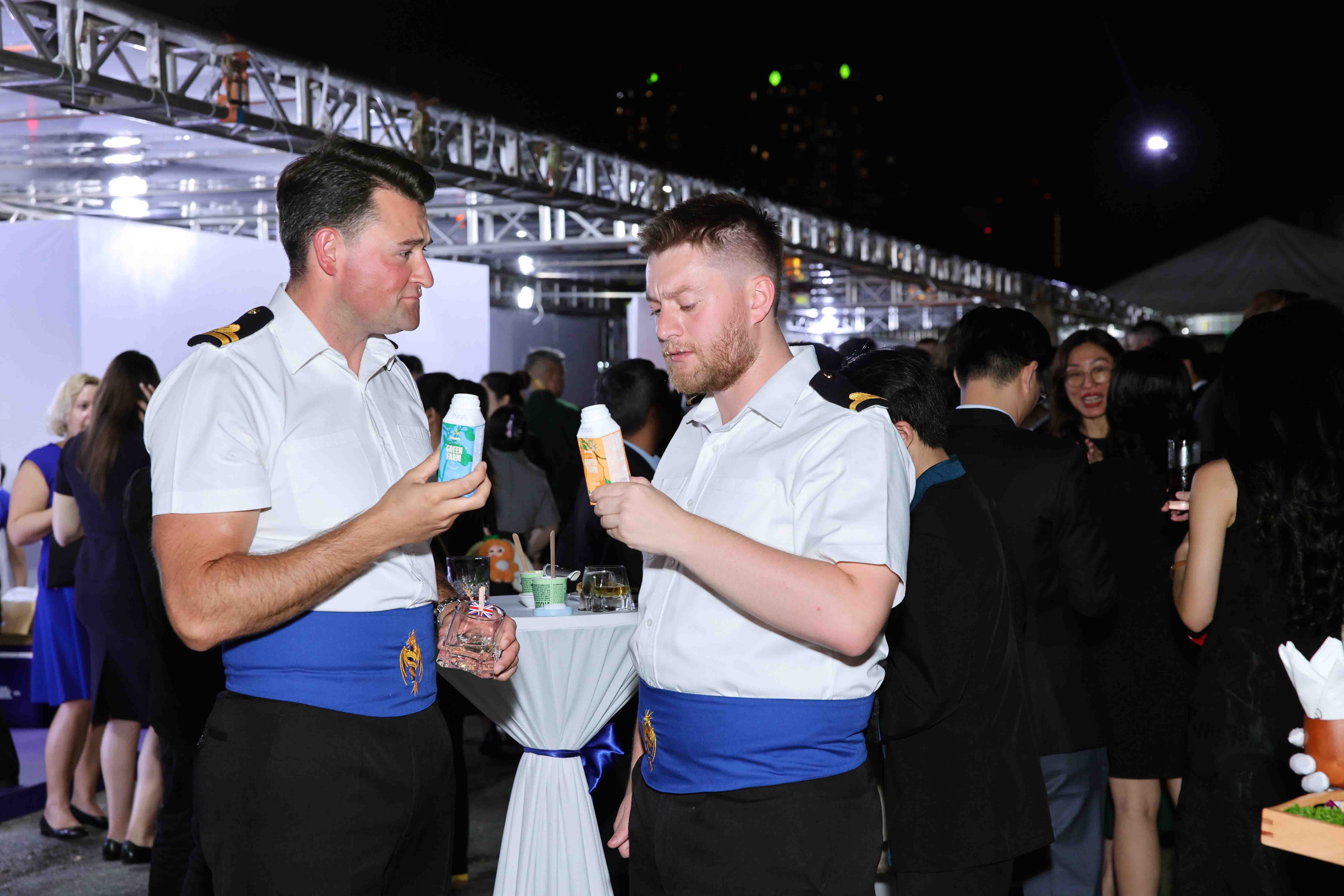 (THPL) - Trong không gian sang trọng của sự kiện đón tàu Hải quân Hoàng gia Anh tại TP.HCM, nhiều khách quốc tế bày tỏ sự ấn tượng và thích thú khi lần đầu trải nghiệm những ly kem, sữa chua hay trà kombucha mát lành từ Vinamilk.