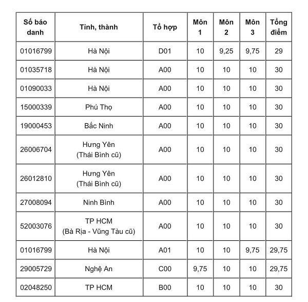 Riêng Hà Nội có một thủ khoa 'kép' khối A01 và D01, TP.HCM có một thủ khoa khối B00.