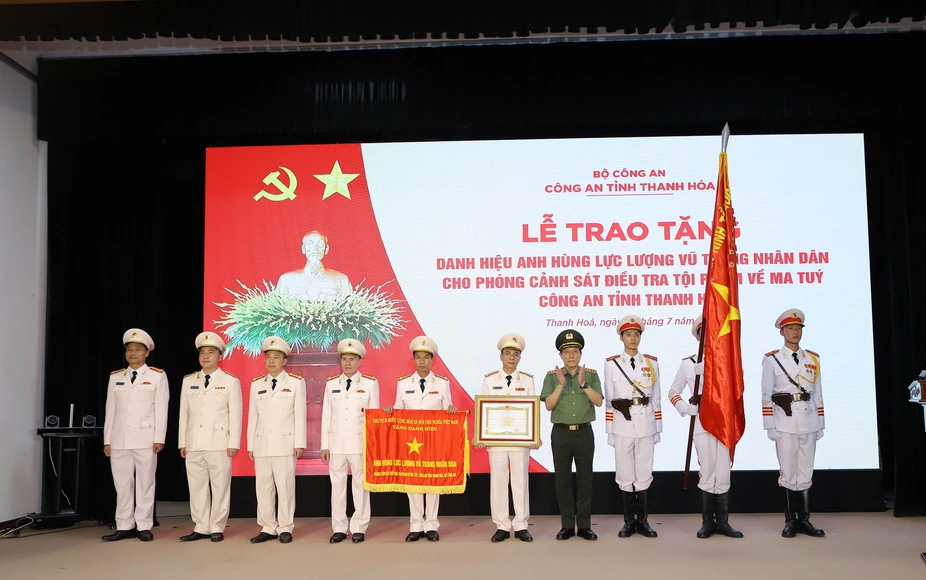(TH&PL) - Chiều 31/7, Công an tỉnh Thanh Hóa long trọng tổ chức lễ trao tặng danh hiệu Anh hùng Lực lượng vũ trang Nhân dân cho Phòng Cảnh sát điều tra tội phạm về ma túy. Đại tướng Lương Tam Quang, Ủy viên Bộ Chính trị, Bí thư Đảng ủy Công an Trung ương, Bộ trưởng Bộ Công an dự, chỉ đạo buổi lễ.