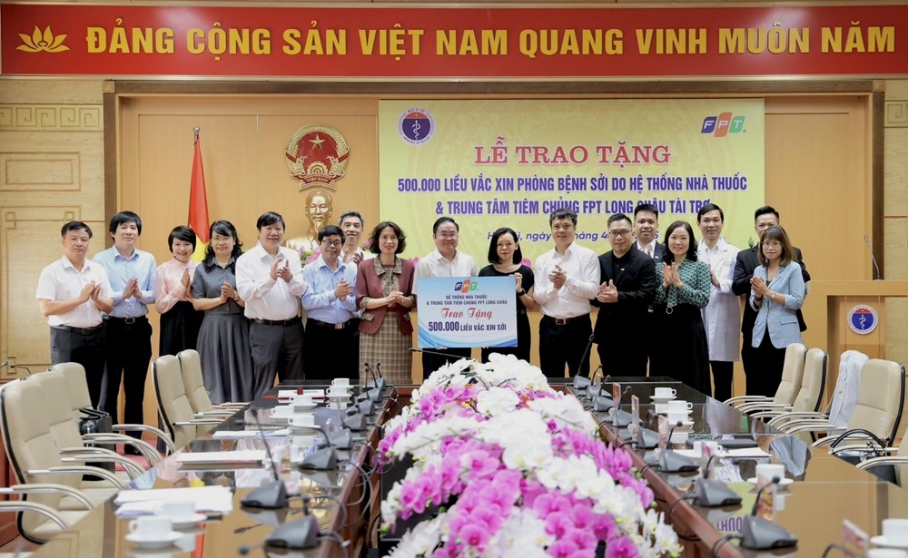 (THPL) - Ngày 22/04/2025, hệ thống Nhà thuốc và tiêm chủng FPT Long Châu đã trao tặng 500.000 liều vắc-xin sởi cho Bộ Y tế nhằm đẩy nhanh tốc độ bao phủ vắc xin sởi trên toàn quốc.