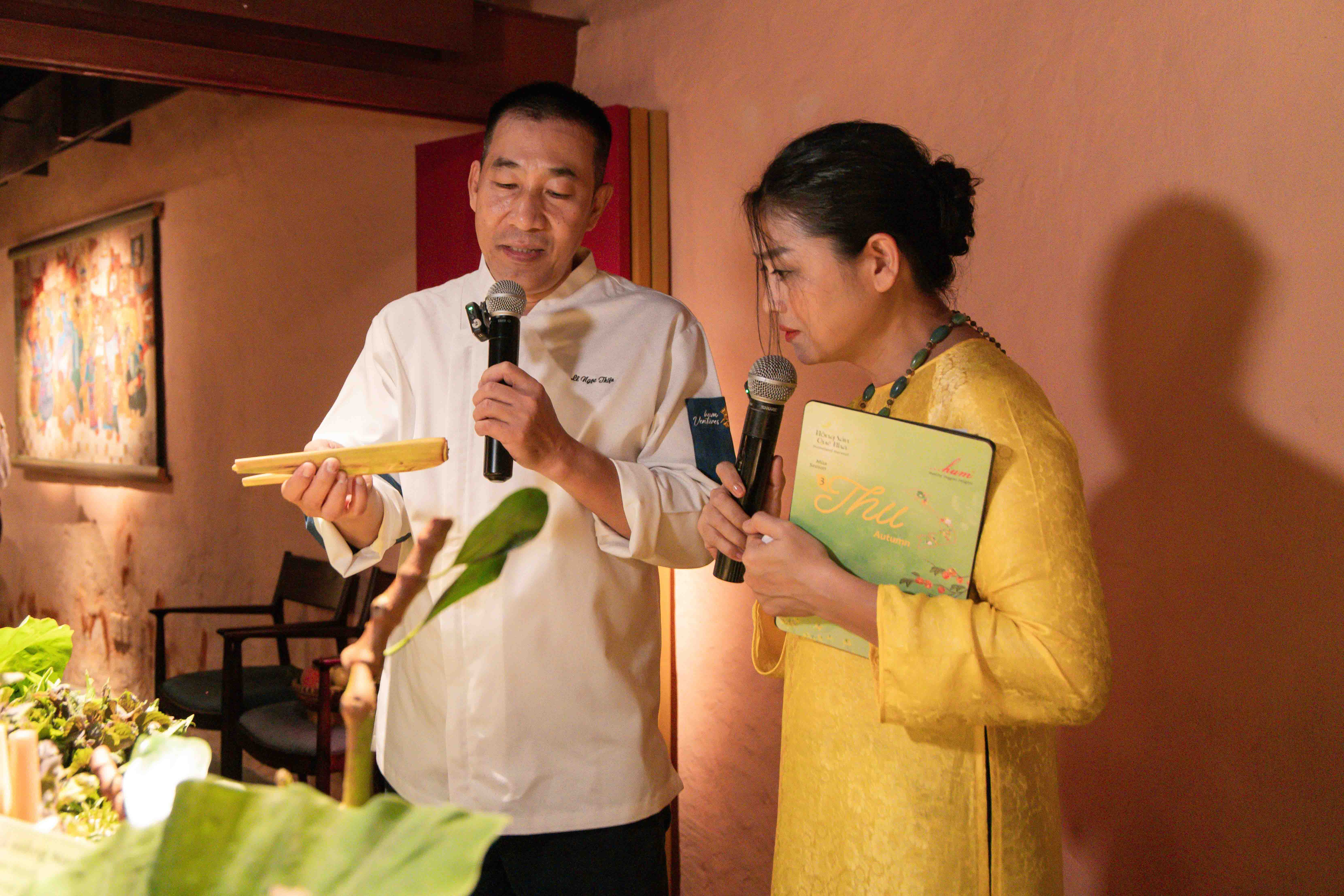 Bữa tiệc mỹ vị thực vật thanh lành khép lại với những món tráng miệng cũng rất cuốn vị giác bởi vị ngọt nhẹ và thanh mát của Chè long nhãn Hưng Yên hạt sen Huế, Chè khoai cánh tiên Phan Thiết, bánh hồng Đà Lạt hay bánh cốm Hà Nội. Trong đó, Chè long nhãn Hưng Yên hạt sen Huế để lại một dư vị khó quên khi được chế biến đặc biệt với nước cất từ sen trắng cổ Bạch Liên Huế giúp bổ khí huyến, an thần và dưỡng tâm. Tất cả hòa quyện không chỉ giữ sự thanh tao của hương vị mà còn nhắc nhớ sự tinh tế của ẩm thực truyền thống xứ Huế kinh kỳ xưa.
