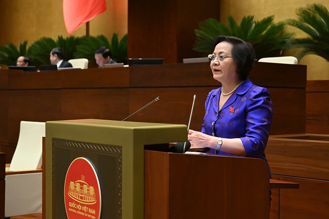 Bộ trưởng Bộ Nội vụ Phạm Thị Thanh Trà trình bày Tờ trình. Ảnh: Cổng TTĐT Quốc hội