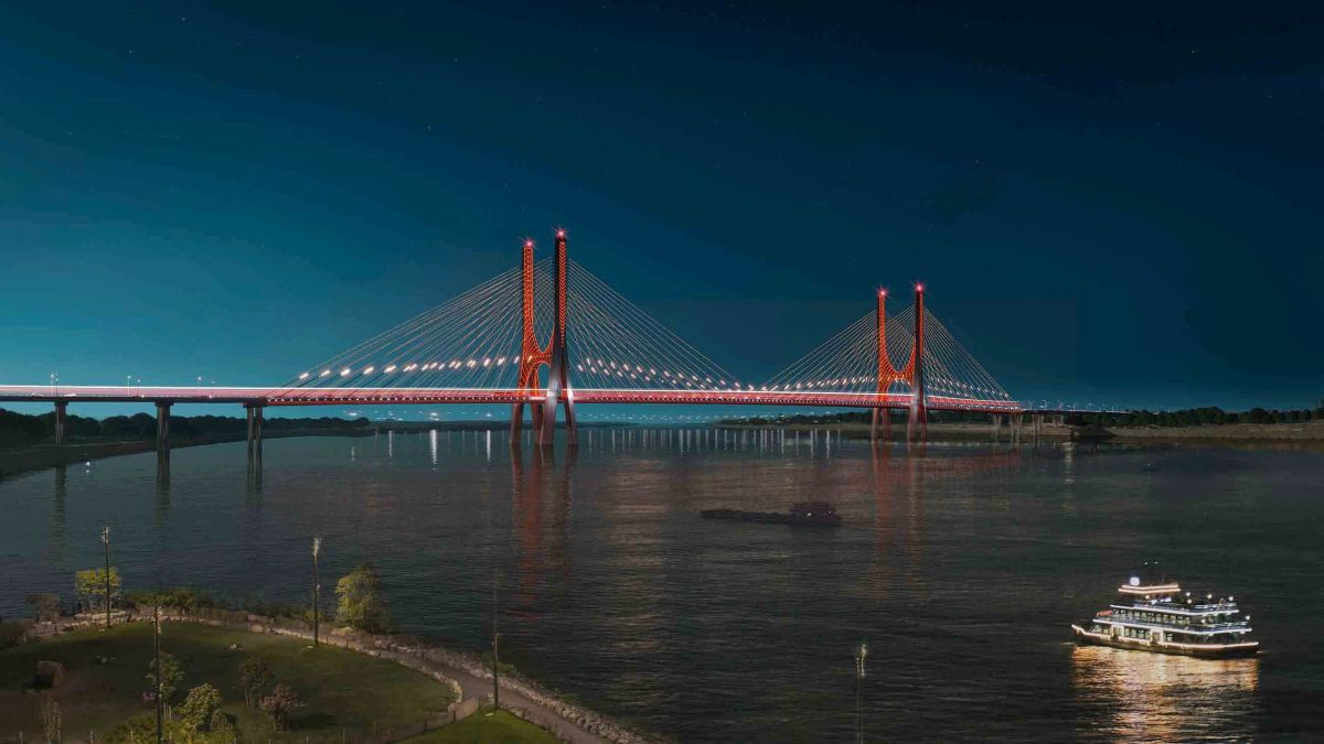 Trong đó, cầu chính vượt sông Hồng là cầu dây văng với sơ đồ nhịp