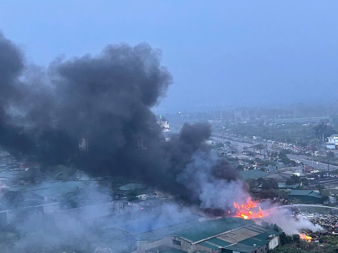 Vào thời điểm trên, nhiều người phát hiện lửa bùng phát tại kho xưởng gỗ rộng hàng trăm mét vuông. Do bên trong chứa nhiều hàng hóa dễ cháy khiến ngọn lửa bùng lên dữ dội, cột khói bốc lên cao làm nhiều người hoảng hốt.