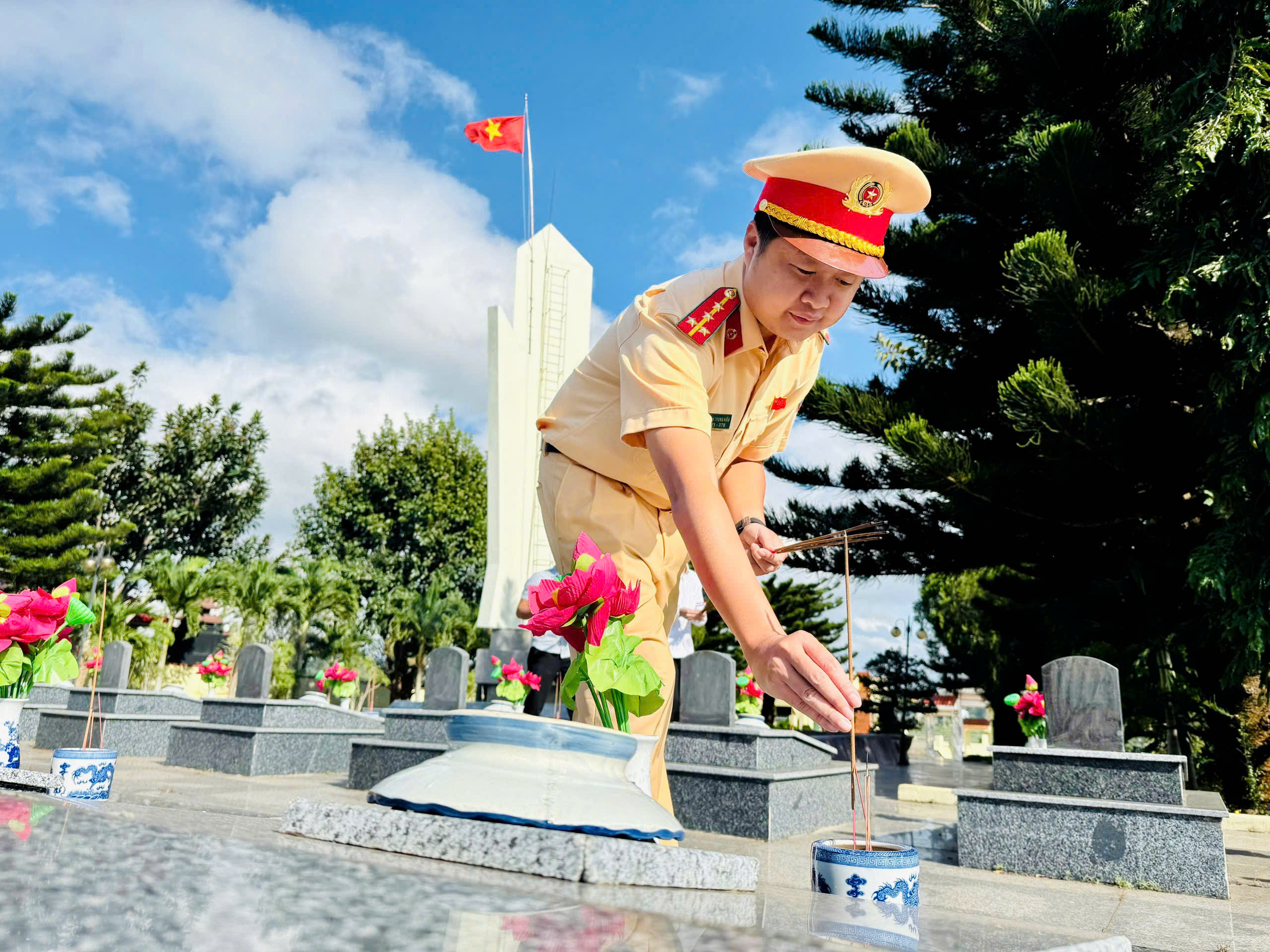 Thực hiện theo Kế hoạch, đoàn công tác do Đại uý Trịnh Trung Hiếu, Phó Bí thư Đoàn Thanh niên Cục CSGT kiêm Bí thư Chi đoàn C08B dẫn đầu, đã tổ chức lễ dâng hoa, dâng hương tại Nghĩa trang liệt sĩ xã Krông Năng. Hoạt động này nhằm tri ân sâu sắc các anh hùng liệt sĩ đã hy sinh vì độc lập, tự do của Tổ quốc, đồng thời giáo dục truyền thống "Uống nước nhớ nguồn" cho đoàn viên thanh niên.
