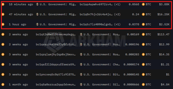 Chính phủ Mỹ thực hiện các giao dịch chuyển Bitcoin
