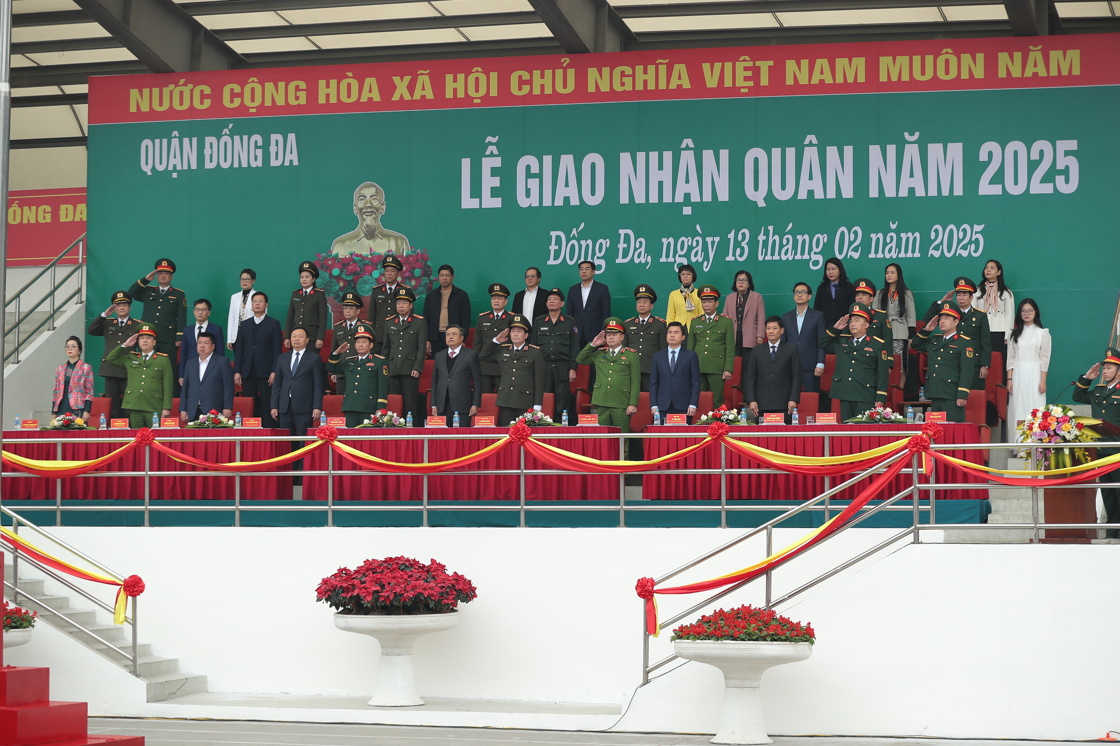 Dự Lễ giao, nhận quân tại quận Đống Đa có: Ủy viên Trung ương Đảng, Chủ tịch Ủy ban nhân dân (UBND) thành phố Hà Nội Trần Sỹ Thanh - Chủ tịch Hội đồng Nghĩa vụ quân sự Thành phố; Thứ trưởng Bộ Công an Lê Quốc Hùng,... đại diện lãnh đạo Bộ Tư lệnh Thủ đô; Công an thành phố Hà Nội; lãnh đạo quận Đống Đa cùng 116 công dân lên đường nhập ngũ và đông đảo nhân dân, người thân của tân binh.