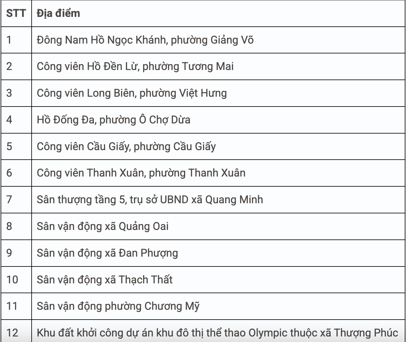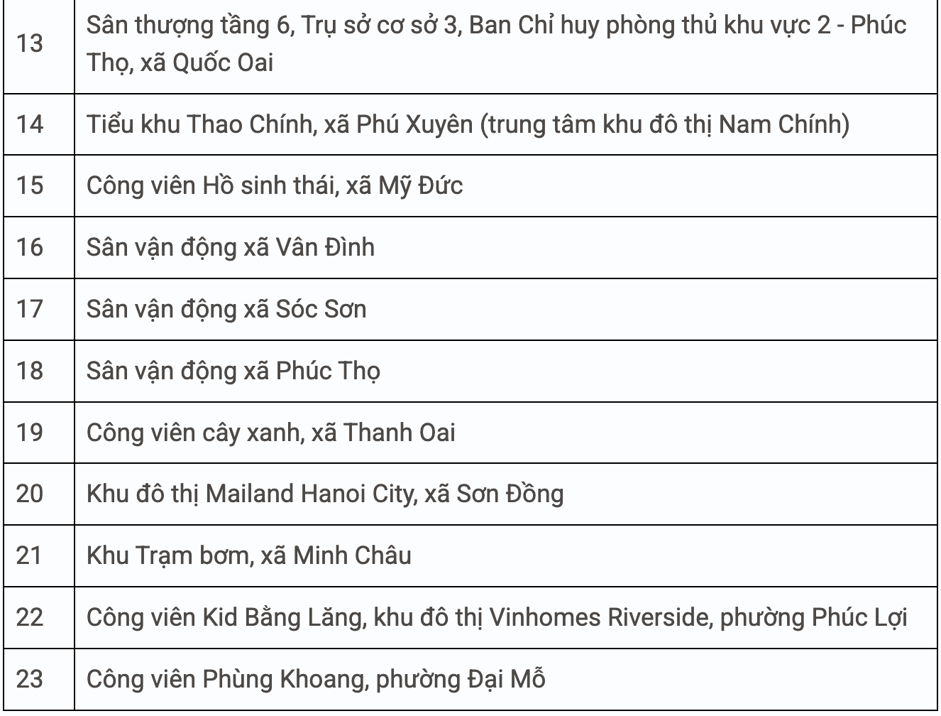 13 điểm bắn pháo hoa tầm thấp gồm:
