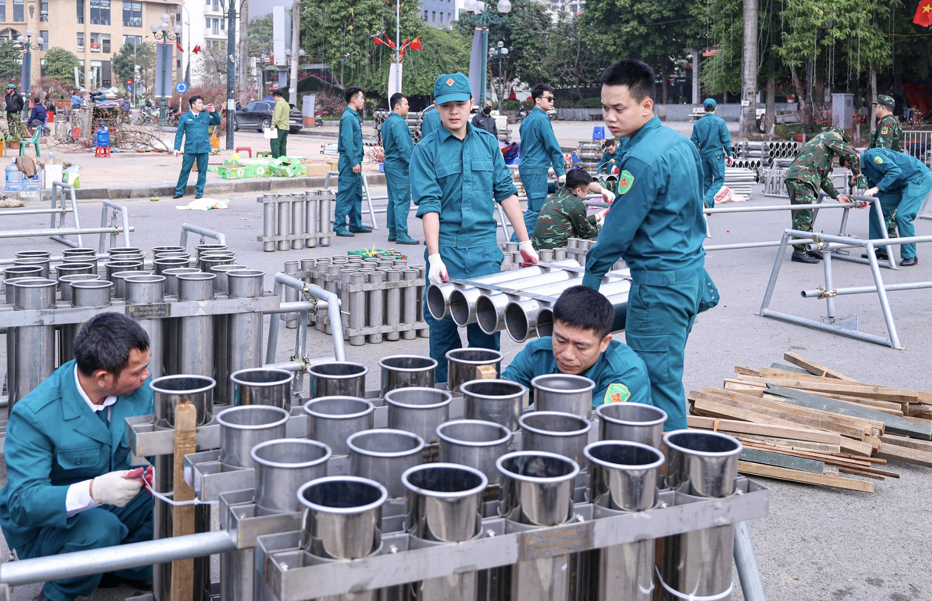 Chỉ còn vài giờ trước Giao thừa Bính Ngọ 2026, nhiều trận địa pháo hoa đã được hoàn tất chuẩn bị.