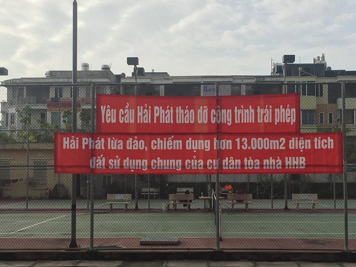 Chung cư Tân Tây Đô: Cư dân căng băng rôn để ‘nghênh đón’ đoàn kiểm tra