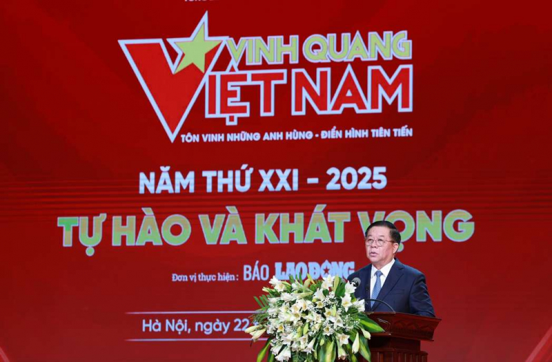 Cũng tại chương trình, ông Nguyễn Đình Khang - Ủy viên Trung ương Đảng, Chủ tịch Tổng Liên đoàn Lao động Việt Nam cho biết, chương trình 'Vinh Quang Việt Nam' năm nay tôn vinh 13 tập thể và 6 cá nhân – là những người dấn thân, sáng tạo, đóng góp vào sự nghiệp phát triển đất nước từ nhà máy, phòng thí nghiệm, đến sân cỏ, giảng đường. Đó là các đơn vị vũ trang đang bảo vệ biên cương Tổ quốc, là những nhà khoa học miệt mài trong phòng thí nghiệm, là công nhân trực tiếp sản xuất tại các nhà máy, là y bác sĩ nơi tuyến đầu, là vận động viên thi đấu hết mình vì màu cờ sắc áo.