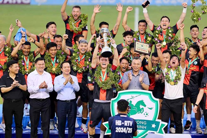 Đây không chỉ là một trận thắng đơn thuần, mà còn là dấu ấn rực rỡ trong ngày đội bóng chính thức nâng cao chiếc cúp vô địch giải hạng Nhất Quốc gia 2024-2025.