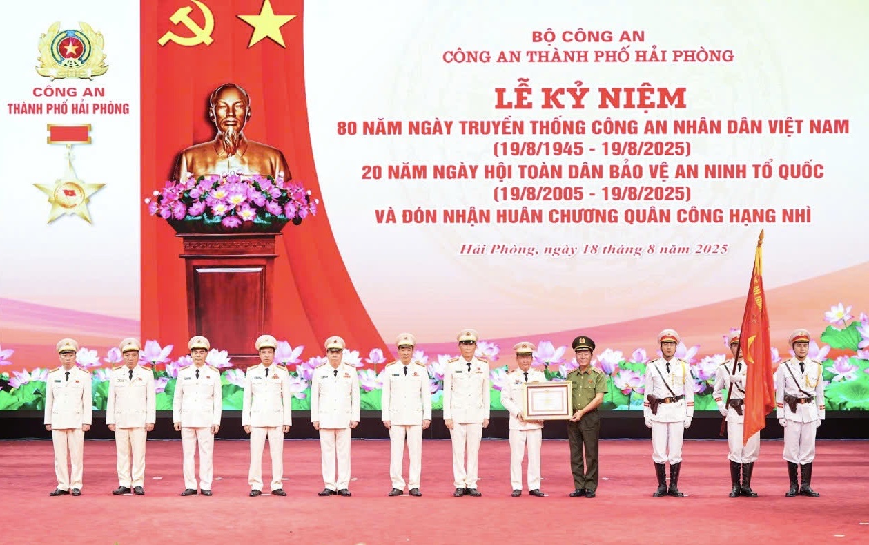 Ngày 18/8, tại Trung tâm Hội nghị - Biểu diễn TP Hải Phòng, Công an TP Hải Phòng tổ chức Lễ kỷ niệm 80 năm Ngày truyền thống Công an nhân dân Việt Nam (19/8/1945-19/8/2025); 20 năm Ngày hội toàn dân bảo vệ ANTQ (19/8/2005-19/8/2025) và đón nhận Huân chương Quân công hạng Nhì do Đảng, Nhà nước trao tặng.