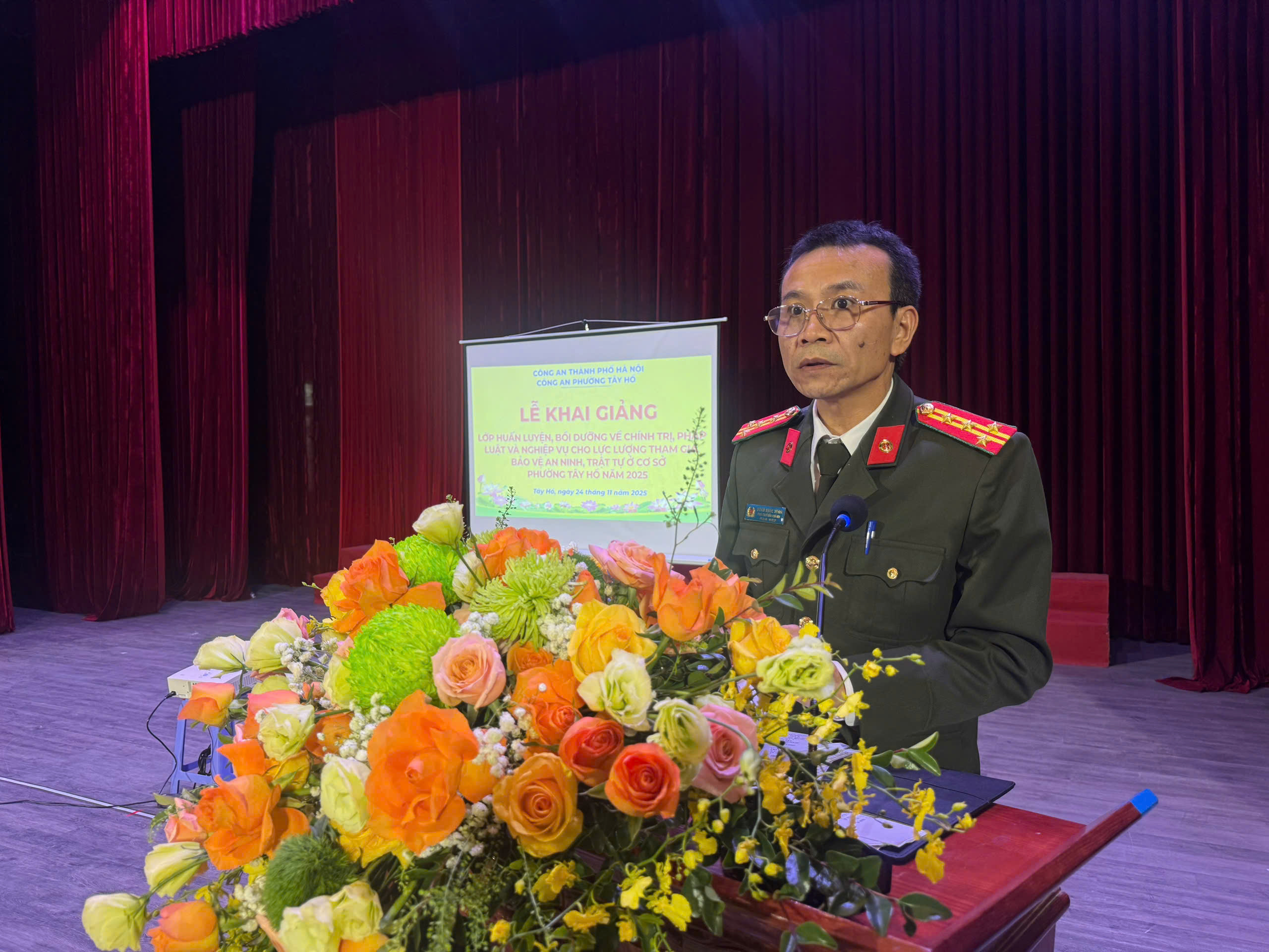(THPL) - Sáng ngày 24/11/2025, Công an phường Tây Hồ phối hợp cùng Phòng Tổ chức cán bộ, CATP Hà Nội tổ chức Lễ khai giảng lớp bồi dưỡng nghiệp vụ đối với lực lượng tham gia bảo vệ an ninh, trật tự ở cơ sở trên địa bàn phường Tây Hồ năm 2025.