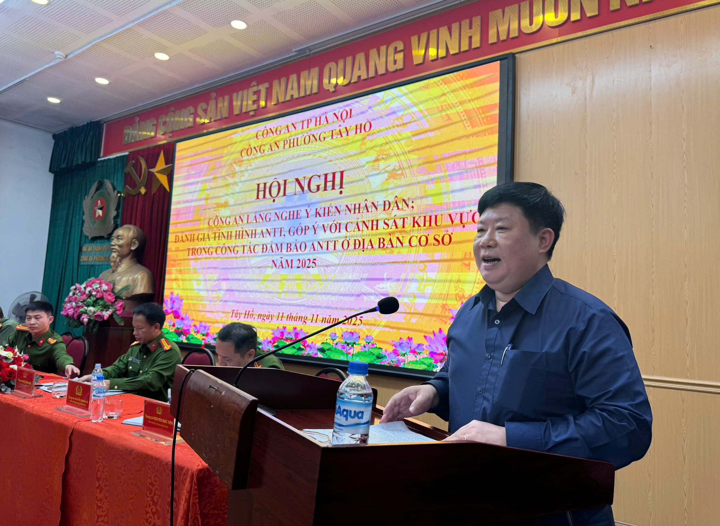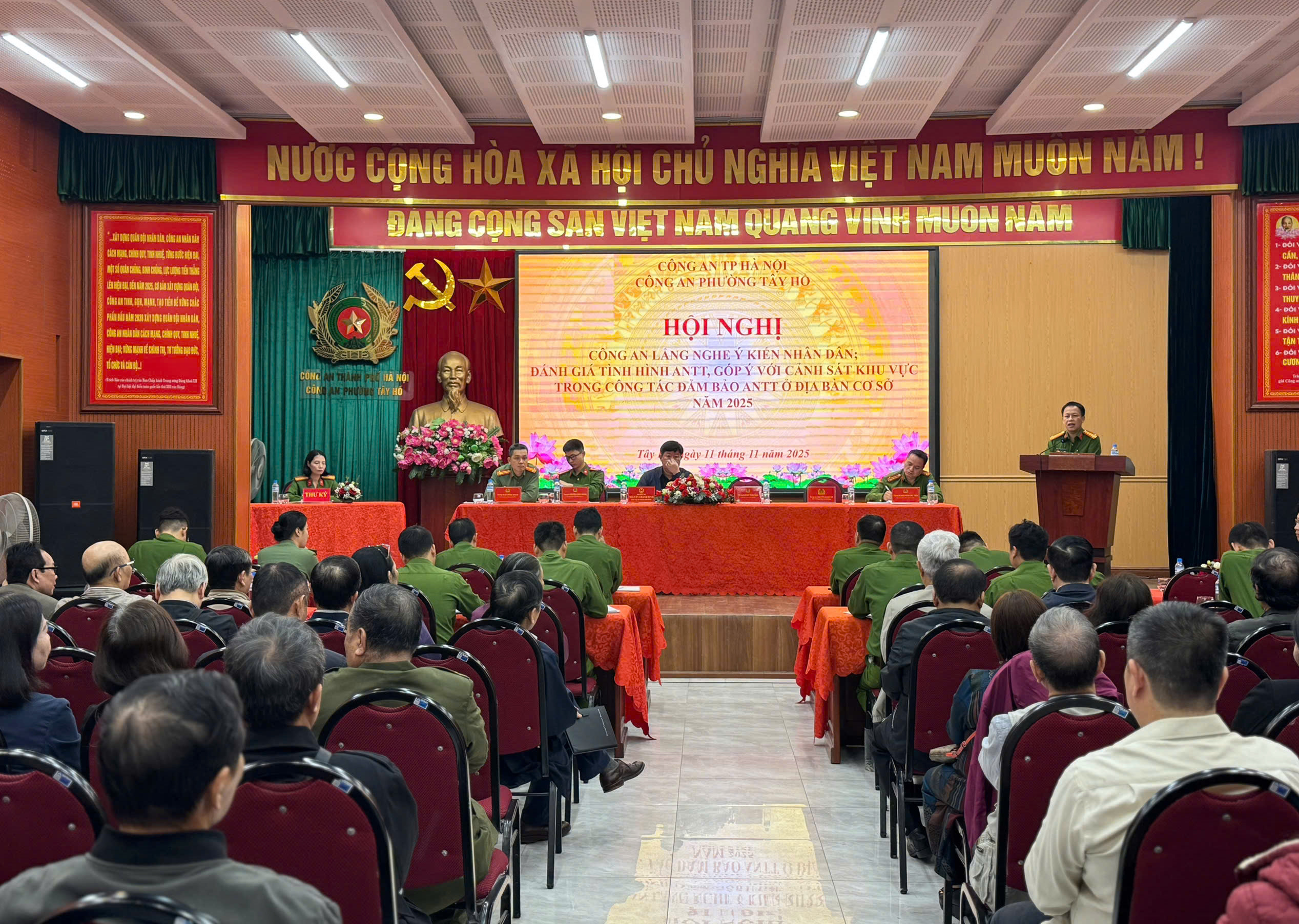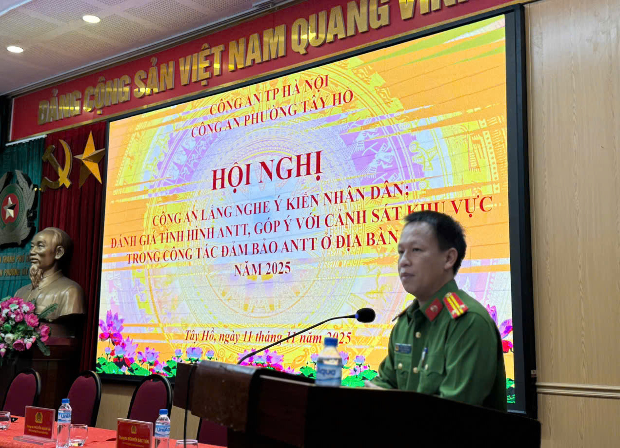 (THPL) - Sáng ngày 11/11/2025, được sự đồng ý của Đảng ủy – UBND phường Tây Hồ, Công an phường Tây Hồ tổ chức Hội nghị “Công an lắng nghe ý kiến Nhân dân”, “Đánh giá tình hình an ninh, trật tự và góp ý về trách nhiệm của lực lượng Cảnh sát khu vực” năm 2025.
