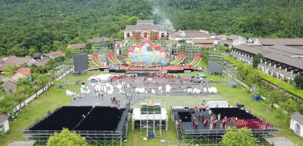 Sân khấu chính của chương trình dài 70m, cao gần 30m, được thiết kế hài hòa với không gian tâm linh Yên Tử, với vị trí trung tâm là biểu tượng hoa sen Phật giáo Trúc Lâm, kết hợp hệ thống âm thanh, ánh sáng, màn hình LED cỡ lớn hiện đại.