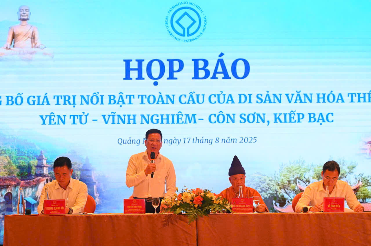 Chiều 17/8, tại buổi họp báo công bố giá trị nổi bật toàn cầu của chuỗi di sản, lãnh đạo ngành văn hóa các địa phương đã nhấn mạnh sự công nhận này không chỉ là niềm tự hào của ba tỉnh Quảng Ninh, Bắc Ninh, TP Hải Phòng mà còn khẳng định giá trị độc đáo, sống động và có tầm vóc toàn cầu của Phật giáo Trúc Lâm, góp phần hình thành bản sắc dân tộc Việt Nam và lan tỏa thông điệp hòa bình, khoan dung, sống hài hòa với thiên nhiên