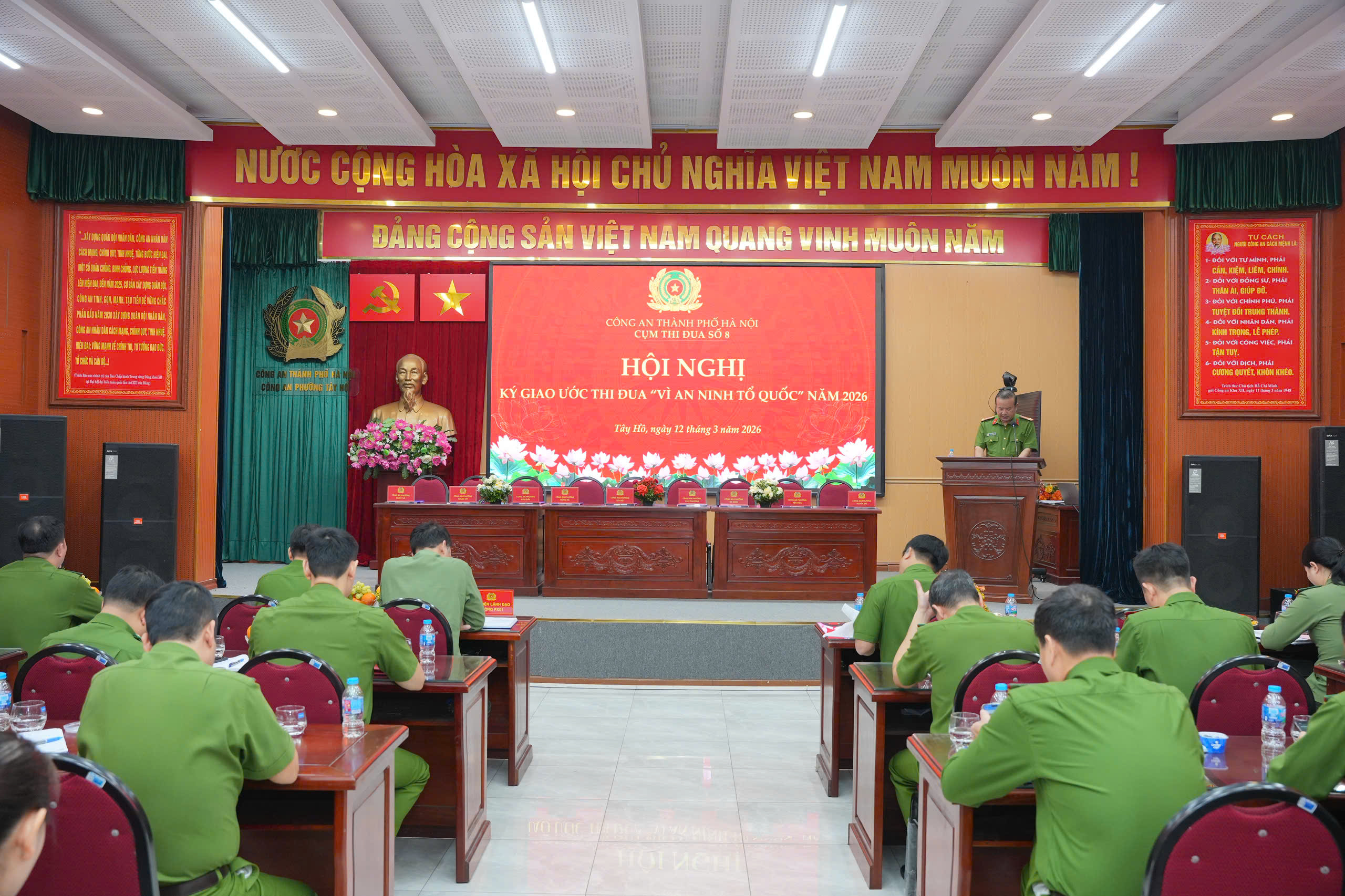 (THPL) - Thực hiện Chương trình công tác năm 2026 và Kế hoạch tổ chức phong trào thi đua “Vì an ninh Tổ quốc” trong Công an Thành phố Hà Nội, được sự đồng ý của Ban Giám đốc Công an Thành phố, Cụm thi đua số 8 đã tổ chức Hội nghị ký giao ước thi đua năm 2026 giữa các đơn vị thành viên trong Cụm.