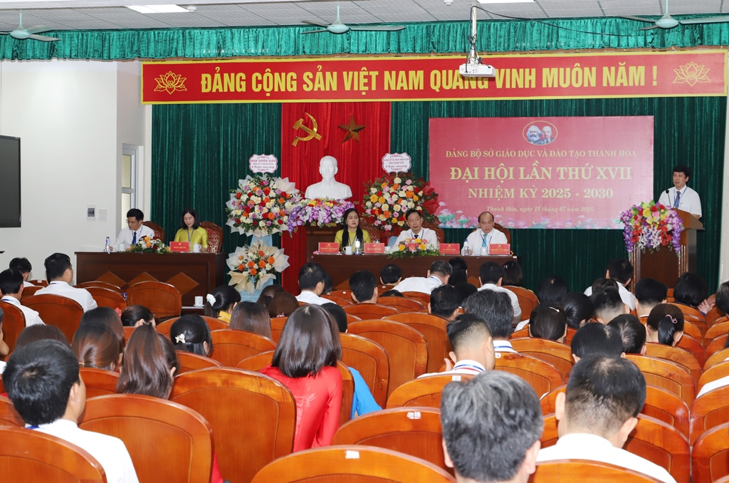 (Sapo) - Chiều 15/7/2025, Sở Giáo dục và Đào tạo Thanh Hóa long trọng tổ chức Đại hội đại biểu Đảng bộ lần thứ XVII, nhiệm kỳ 2025–2030. Đại hội không chỉ đánh giá kết quả thực hiện nhiệm vụ chính trị của nhiệm kỳ qua, mà còn đề ra định hướng phát triển đột phá trong giai đoạn mới, góp phần xây dựng nền giáo dục Thanh Hóa toàn diện, hiện đại, đáp ứng yêu cầu đổi mới và hội nhập.