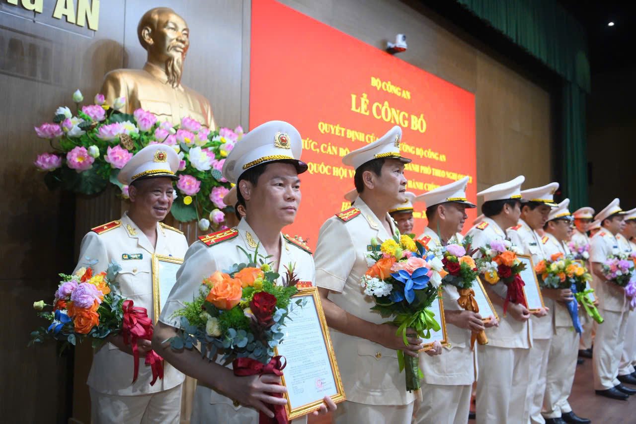 Đại tướng Lương Tam Quang đã trao quyết định và tặng hoa chúc mừng cho 34 lãnh đạo được điều động, bố trí giữ chức vụ Giám đốc Công an tỉnh, thành phố (mới) sau sáp nhập từ ngày 1-7-2025.