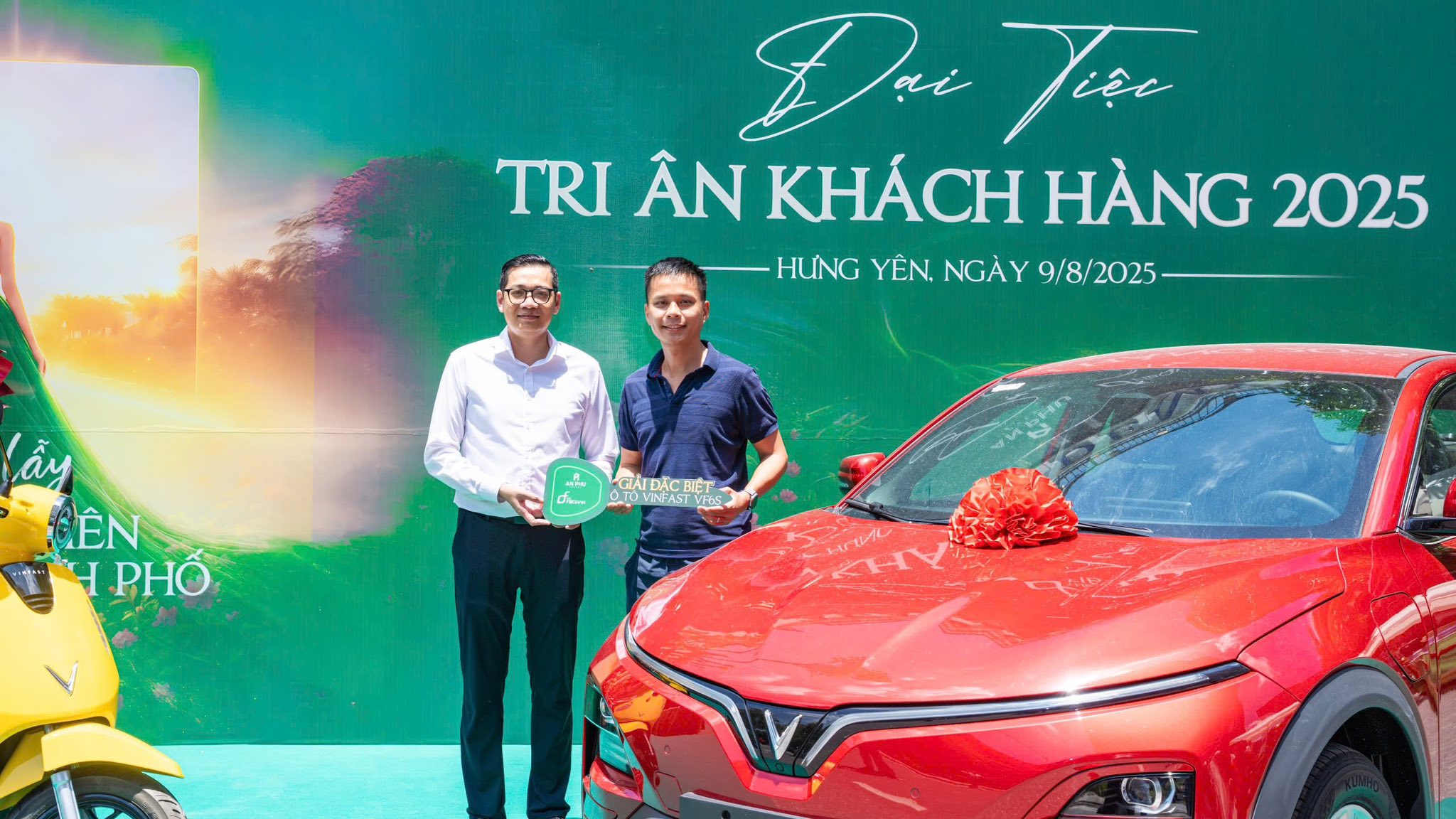 Không khí sự kiện nhanh chóng bùng nổ ở phần bốc thăm may mắn với tổng giá trị giải thưởng hàng tỷ đồng. Giải đặc biệt – xe ô tô Vinfast VF6s – đã tìm được chủ nhân, bên cạnh các phần thưởng hấp dẫn khác như xe máy điện Evo 200, robot hút bụi Xiaomi, máy lọc không khí LG, máy ép trái cây Philips… Tiếng vỗ tay xen lẫn những nụ cười rạng rỡ đã biến buổi lễ thành một ngày hội thực sự, nơi niềm vui và sự bất ngờ nối tiếp nhau.