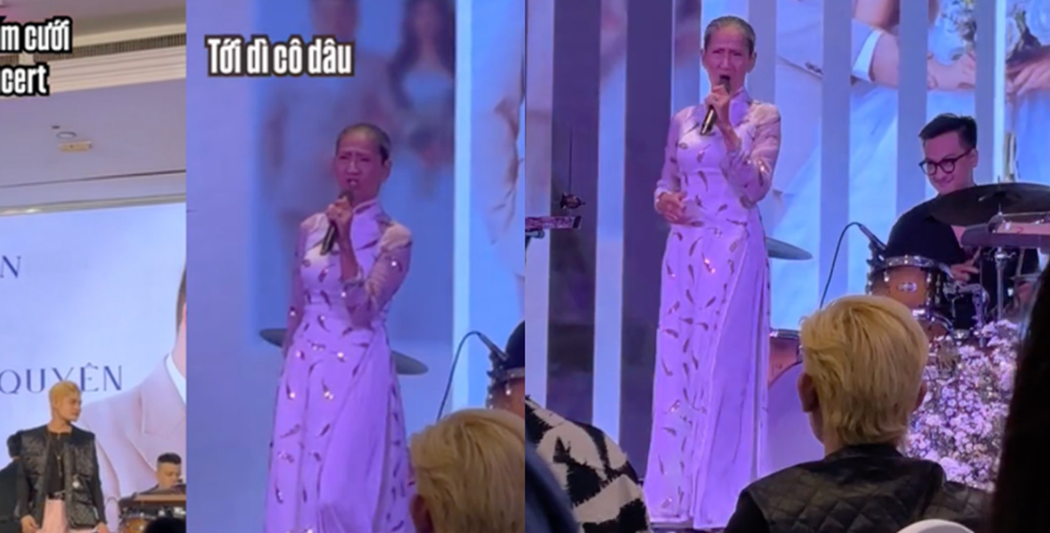 Sau phần lễ, khách mời được thưởng thức tiếng đàn bầu sâu lắng của bố chú rể, NSUT Toàn Thắng với bài Mẹ yêu con và God Father. Không khí dần nóng lên với bài hát Ngựa ô thương nhớ của ca sĩ U70 Lệ Hằng. Cô cũng là dì ruột của cô dâu.