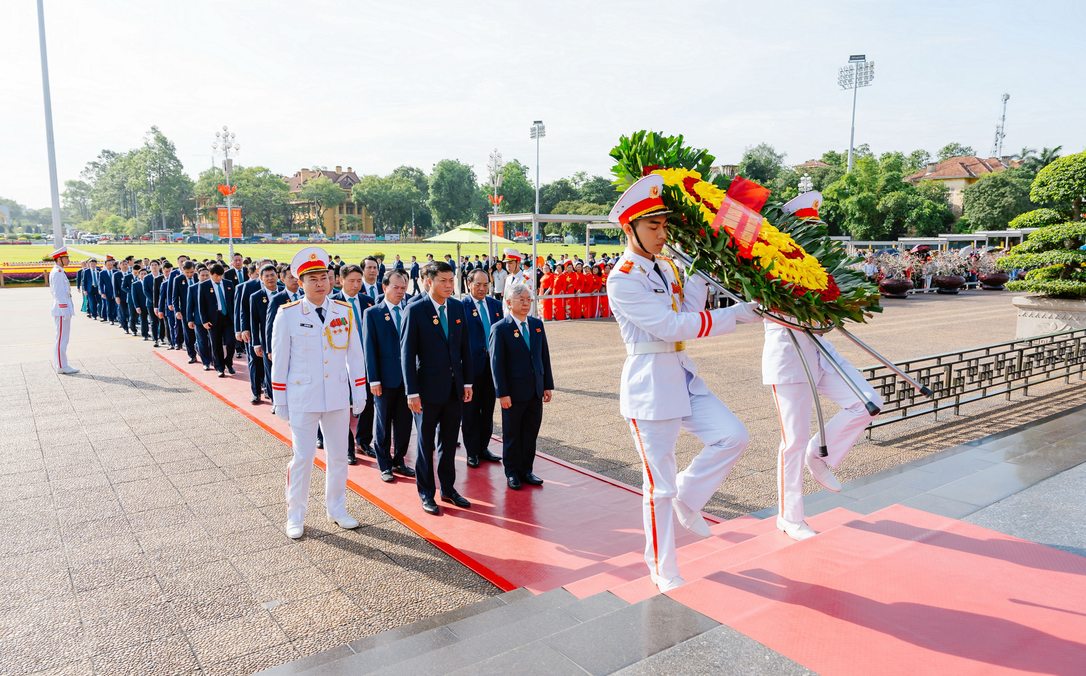 Trong không khí cả nước hân hoan chào mừng kỷ niệm 135 năm Ngày sinh Chủ tịch Hồ Chí Minh vĩ đại, sáng ngày 18/5/2025, Đảng ủy, Ban Lãnh đạo BIDV cùng các đại biểu về dự Đại hội đã tổ chức lễ dâng hoa và vào Lăng viếng Chủ tịch Hồ Chí Minh.