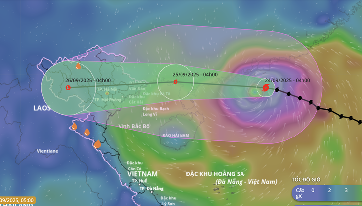 Chính vì thế, đến khoảng sáng mai 25/9, dự báo tâm bão sẽ đi vào khu vực phía bắc của vịnh Bắc Bộ. Do ảnh hưởng của bão trong đêm nay 24/9, khu vực biển của vịnh Bắc Bộ bắt đầu có gió mạnh dần lên cấp 6, cấp 7 và sau đó đạt cấp 8, cấp 9 và vùng gần tâm bão có thể đạt cấp 10 và cấp 11, giật cấp 13, cấp 14.