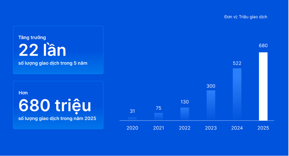 Năm 2025, 97% tổng giao dịch của khách hàng cá nhân thực hiện qua kênh số. Giao dịch số tăng 30% so với 2024, đạt gần 680 triệu lượt. Giá trị giao dịch số tăng 26%, đạt 4,6 triệu tỷ đồng.