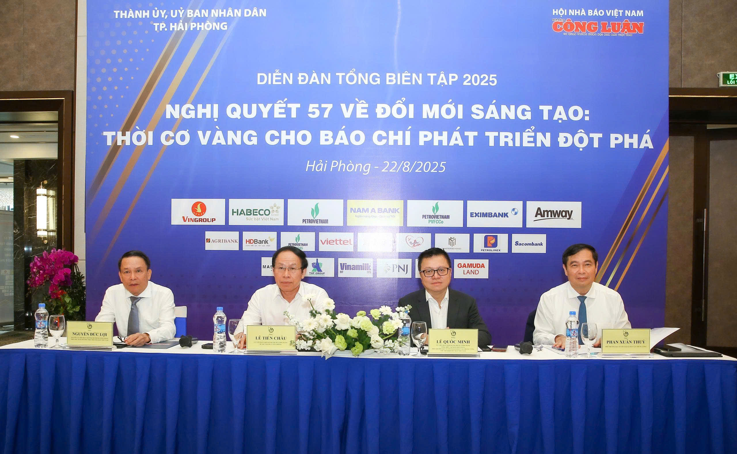 (THPL) – Chiều ngày 22/8, tại TP. Hải Phòng, Diễn đàn Tổng Biên tập 2025 với chủ đề “Nghị quyết 57 về đổi mới sáng tạo: Thời cơ vàng cho báo chí phát triển đột phá” đã chính thức diễn ra. Diễn đàn do Hội Nhà báo Việt Nam chủ trì, Báo Nhà báo và Công luận tổ chức.
