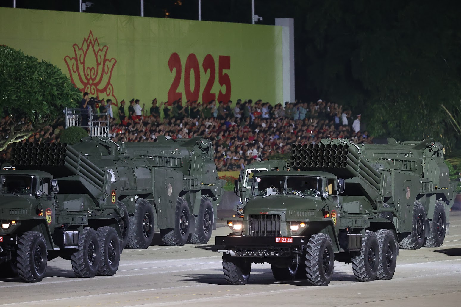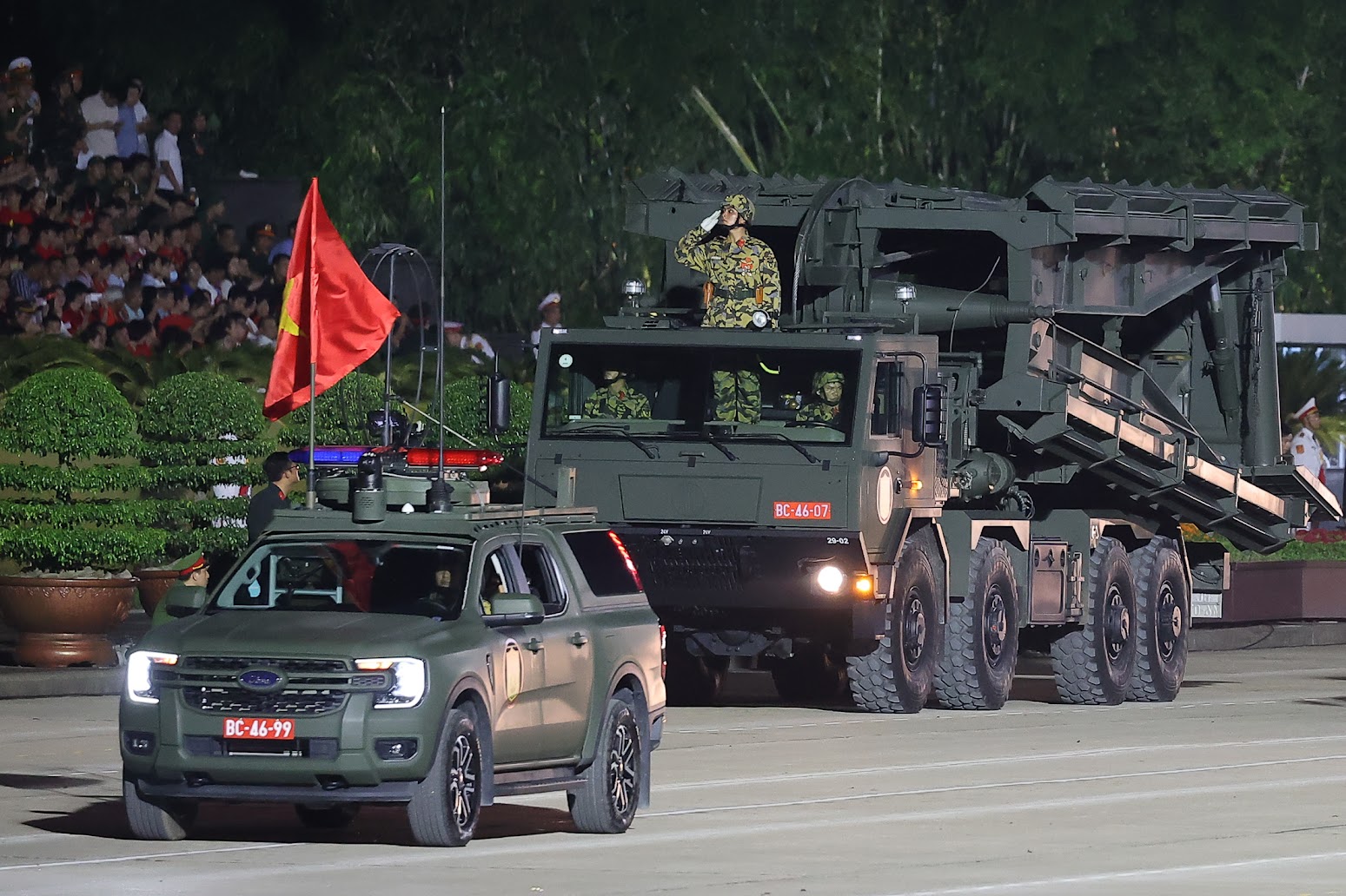 Dàn vũ khí, khí tài, thiết bị quân sự tham gia Tổng hợp luyện tối 21/8. Ảnh: VGP