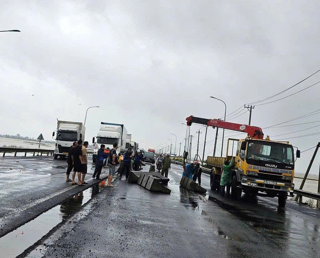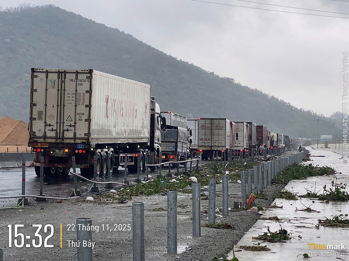 Thêm vào đó, sau lũ lụt, mặt đường hư hỏng nặng, dải phân cách cứng bị lũ cuốn đổ ra đường, khiến việc di chuyển của các phương tiện hết sức khó khăn. Dòng xe tiếp tục nối đuôi nhau trên Quốc lộ 1, gây áp lực lớn cho công tác đảm bảo giao thông.