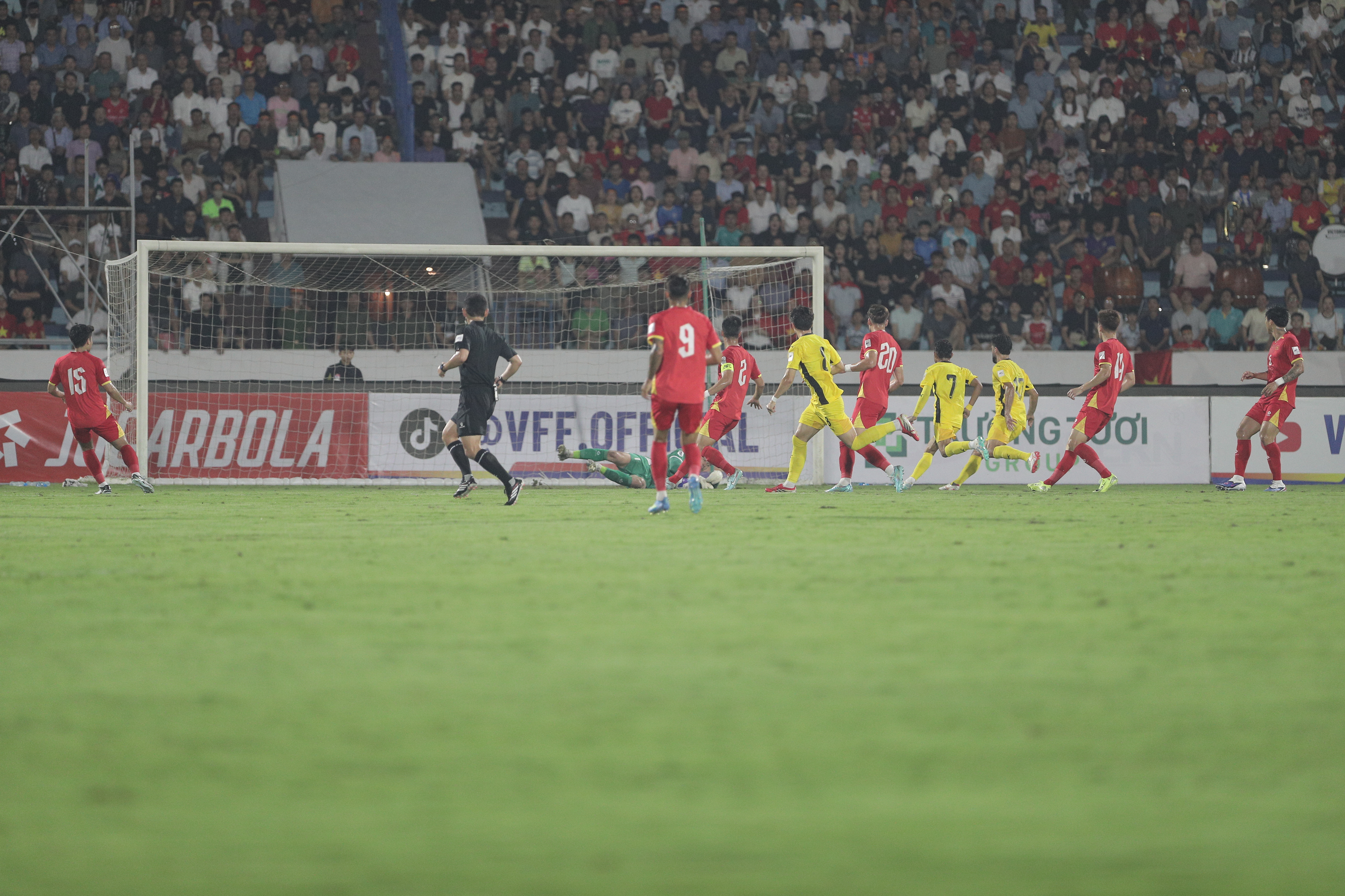 Đà hưng phấn tiếp tục được duy trì và chỉ 8 phút sau, Tiến Anh thực hiện đường chuyền chính xác để Xuân Son tiếp tục đánh đầu thành công, hoàn tất cú đúp và đưa đội tuyển Việt Nam vươn lên dẫn trước 3-0.