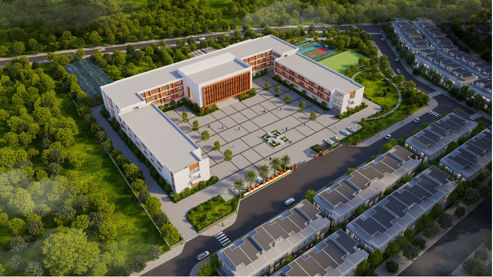 Ý tưởng thiết kế của trường Tiểu học, THCS & THPT FPT Vinh được lấy cảm hứng từ sự giao thoa giữa thiên nhiên xanh khoáng đạt của Eco Central Park và không gian học tập, nhằm tạo ra một môi trường đào tạo hiện đại, năng động và sáng tạo. Bố cục tổng thể được tổ chức theo dạng hợp khối, với khối giảng đường đặt tại vị trí trung tâm, tạo nên khoảng sân trong lớn đóng vai trò như quảng trường – nơi diễn ra các hoạt động giáo dục, văn hóa ngoài trời và cũng là không gian sinh hoạt chung của toàn trường. Với thiết kế hiện đại, giàu tính nhận diện, công trình không chỉ là nơi học tập, rèn luyện của học sinh, mà còn trở thành điểm nhấn hài hòa giữa công trình và cảnh quan xanh của khu đô thị.