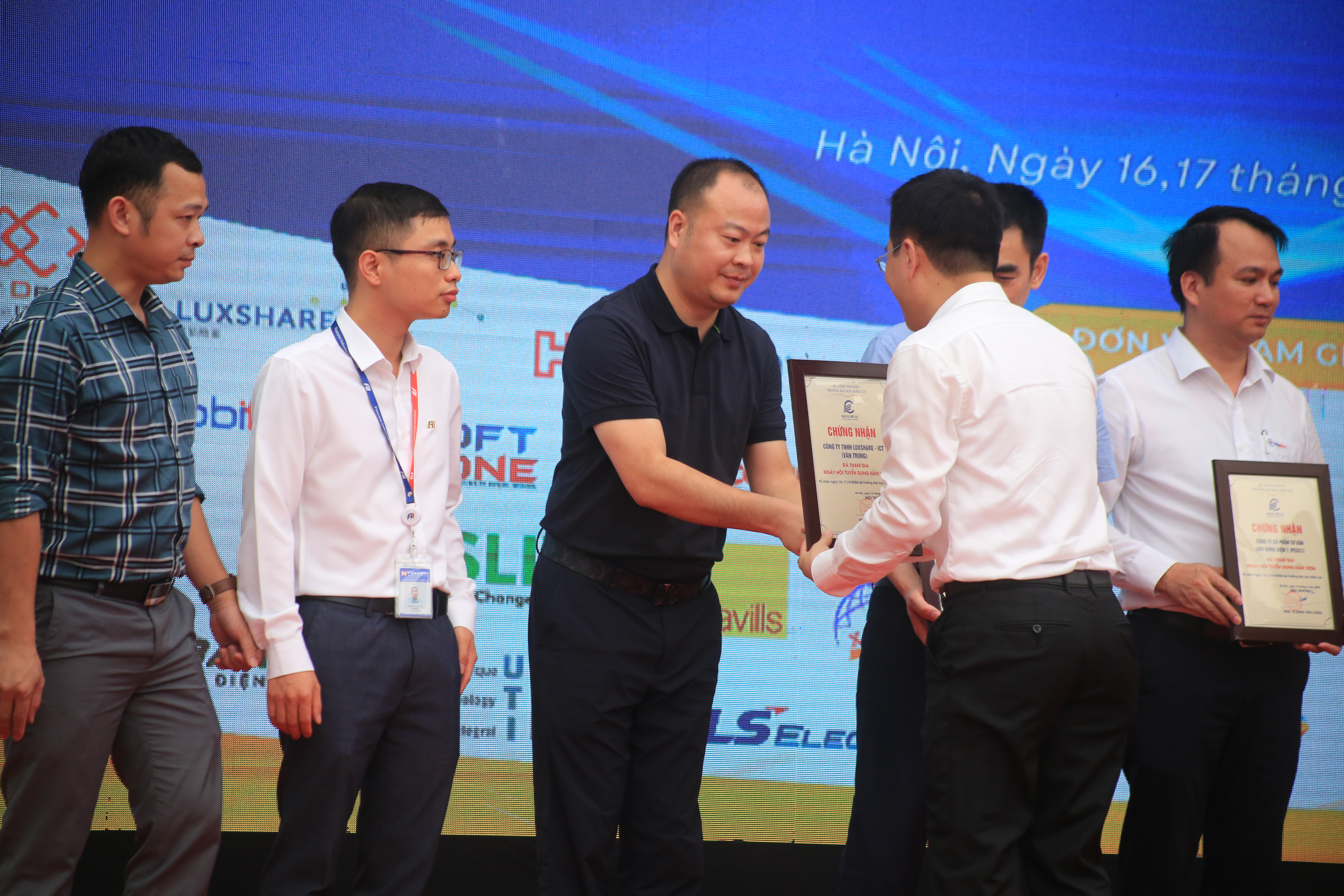 Buổi chiều là hội thảo tuyển dụng Kỹ sư khối Công nghệ thông tin – Điện tử viễn thông với sự tham gia của 15 doanh nghiệp và khoảng 400 sinh viên thuộc Khoa Công nghệ thông tin và Khoa Điện tử viễn thông.