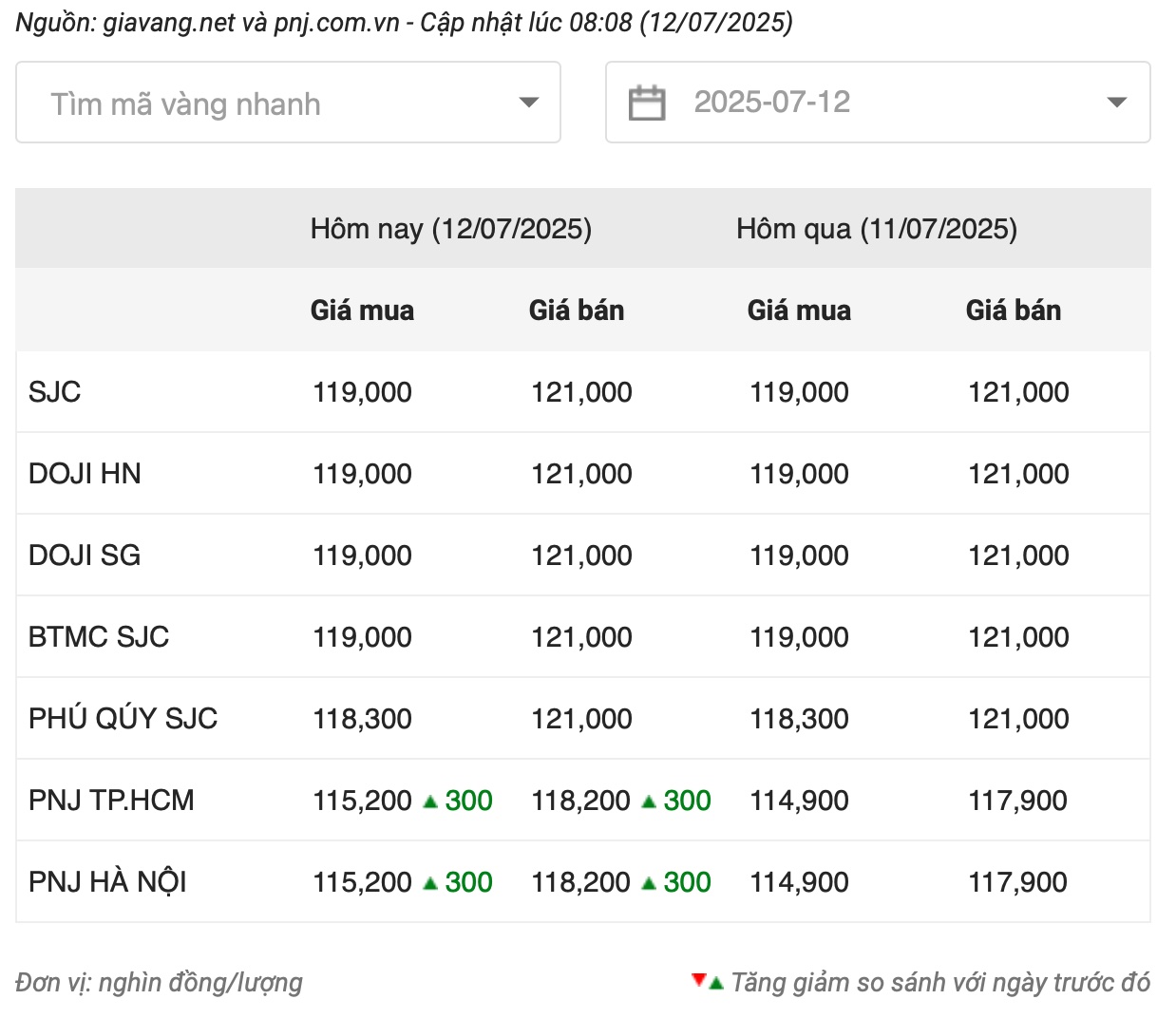 Thương hiệu vàng DOJI niêm yết giá vàng mua vào - bán ra ở mức 119 - 121 triệu đồng/lượng tại khu vực Hà Nội và TP Hồ Chí Minh. Như vậy, so với ngày hôm qua, giá vàng thương hiệu này không thay đổi cả hai chiều mua và bán.