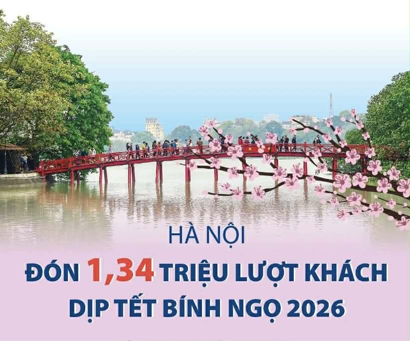 (THPL) - Trong kỳ nghỉ Tết Bính Ngọ 2026, du lịch Hà Nội bứt phá ấn tượng, lập kỷ lục đón 1,34 triệu lượt khách, tăng 36,3% so với cùng kỳ. Tổng thu ước đạt 4,87 nghìn tỷ đồng, tăng 40,2%, tạo đà khởi sắc cho kinh tế Thủ đô ngay từ những ngày đầu xuân.