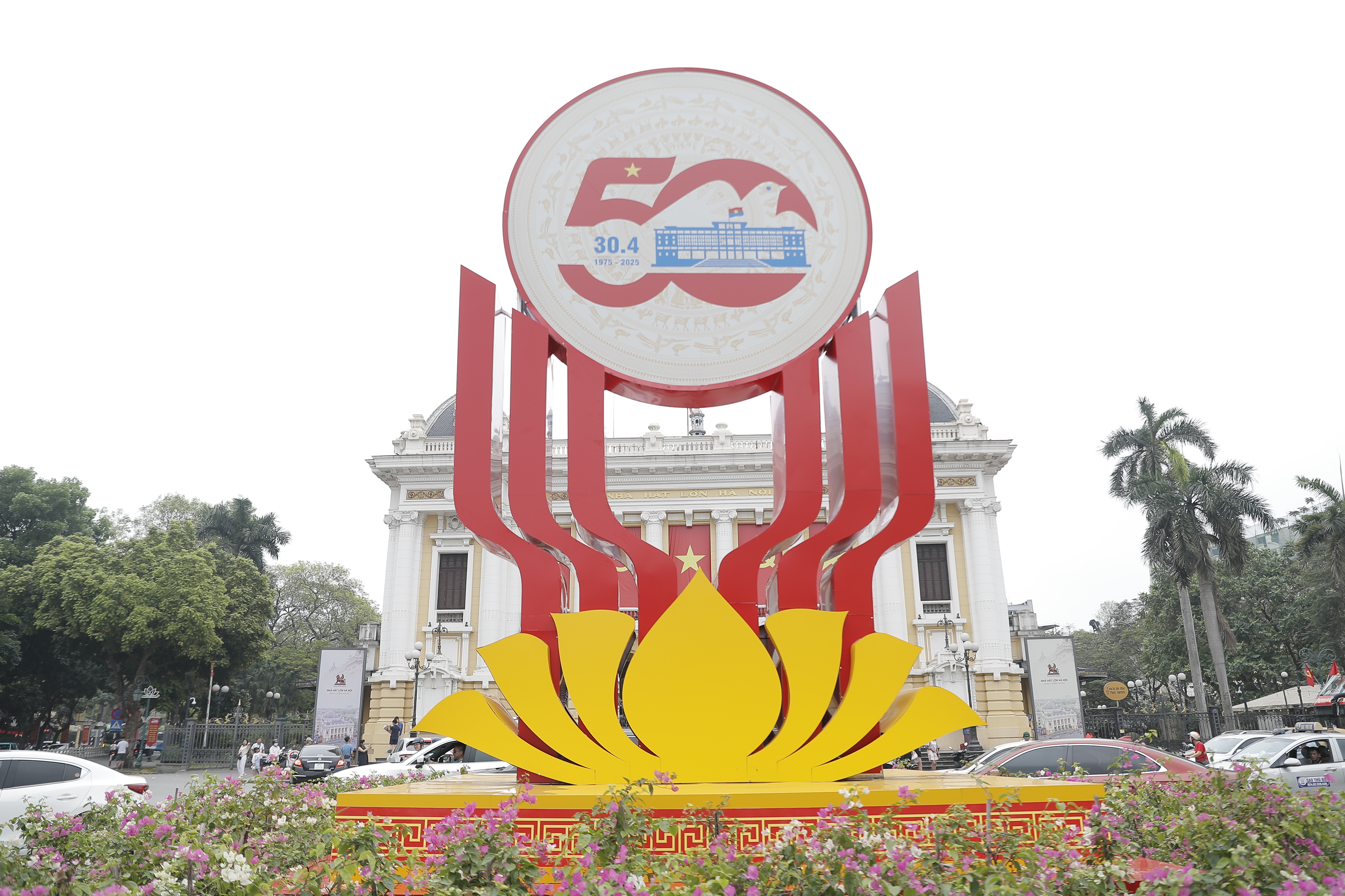 Những ngày cuối tháng 4, Hà Nội khoác lên mình diện mạo mới với cờ hoa, pano, áp phích rực rỡ, chào mừng kỷ niệm 50 năm Ngày Giải phóng miền Nam, thống nhất đất nước (30/4/1975 – 30/4/2025). Các tuyến phố trung tâm như Tràng Tiền, Lê Duẩn, Hai Bà Trưng, đặc biệt khu vực xung quanh Hồ Hoàn Kiếm, đã được trang trí nổi bật với các biểu tượng lịch sử, khẩu hiệu lớn về mốc son quan trọng trong lịch sử dân tộc.