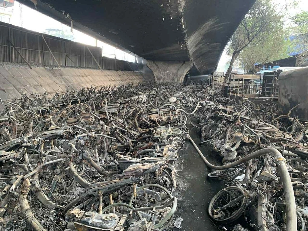 Vụ cháy xảy ra vào ngày 30/8 tại nhánh lên xuống gầm cầu Vĩnh Tuy, khiến hàng trăm xe máy, chủ yếu là phương tiện vi phạm giao thông bị thiêu rụi hoàn toàn. Sức nóng khủng khiếp của ngọn lửa đã gây hư hại đáng kể cho kết cấu công trình, làm bong tróc nhiều mảng bê tông, lộ ra cốt thép bên trong đáy dầm và trụ cầu.