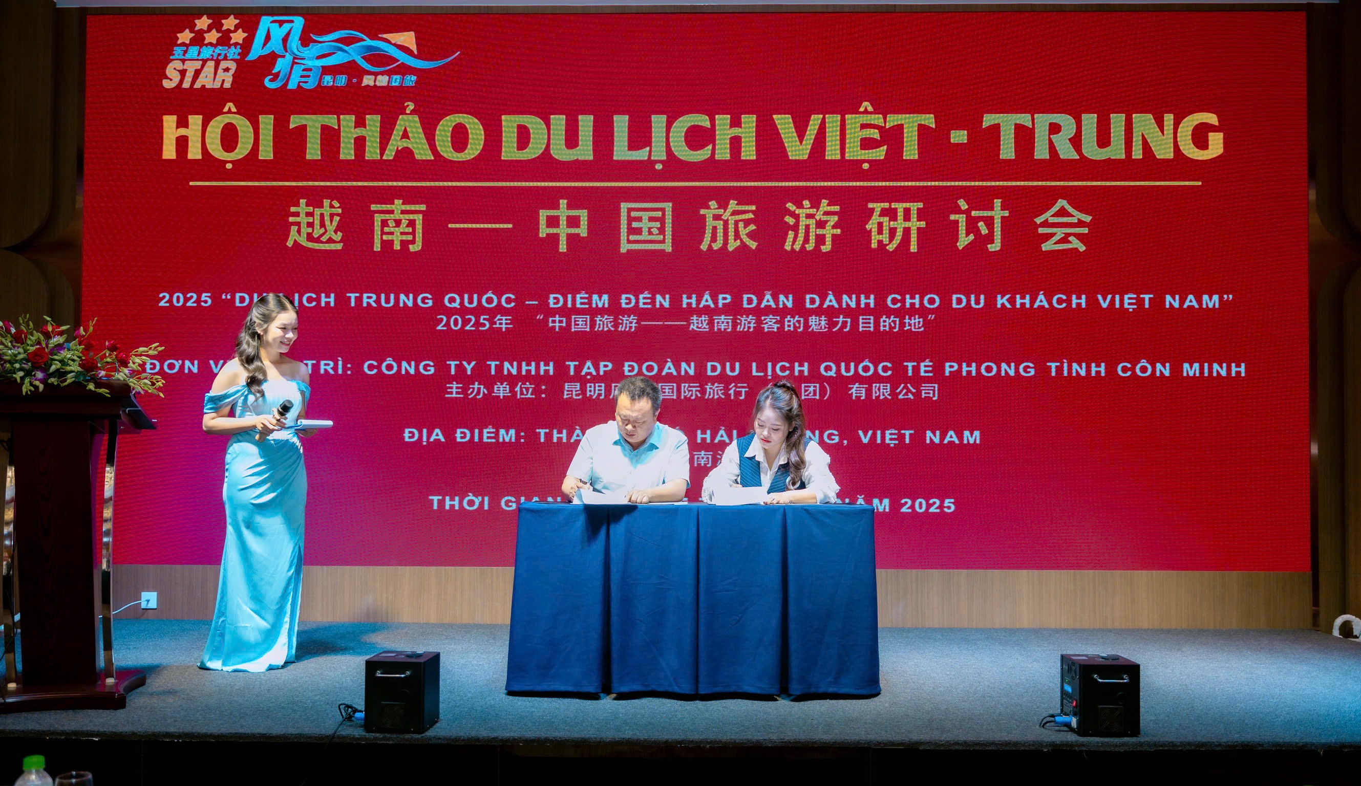 Mới đây, tại Trung tâm sự kiện Pandora (số 12 Võ Nguyên Giáp, phường An Biên, TP. Hải Phòng), Công ty TNHH Du lịch Quốc tế Phong Tình Côn Minh (Trung Quốc) đã tổ chức Hội thảo Du lịch Việt – Trung với sự tham dự của Phó giám đốc và cán bộ Phòng Quảng bá Xúc tiến Du lịch (Sở Văn hóa, Thể thao và Du lịch Hải Phòng) cùng các đơn vị lữ hành quốc tế. Sự kiện là dịp để doanh nghiệp hai nước gặp gỡ, trao đổi thông tin, giới thiệu sản phẩm và điểm đến đặc sắc, hướng tới tăng lượng khách Trung Quốc đến Việt Nam, đặc biệt là Hải Phòng, trong thời gian tới.