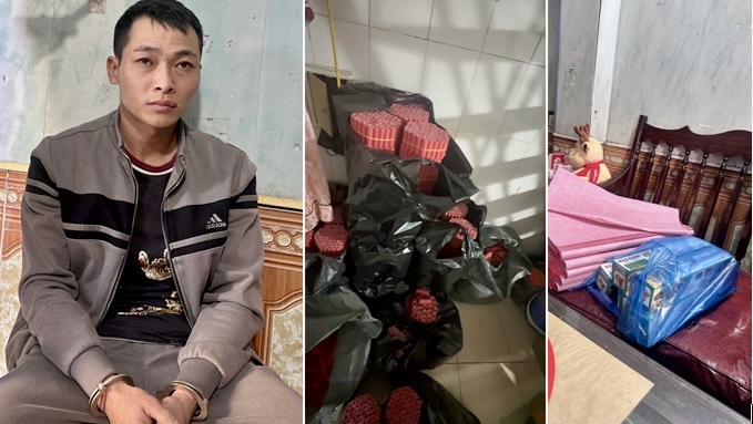 Tổng trọng lượng tang vật thu giữ quả tang và khám xét khẩn cấp gồm: hơn 123kg pháo thành phẩm và bán thành phẩm; 67kg tiền chất được sử dụng để chế tạo thuốc pháo, khoảng 10kg giấy màu dùng để làm vỏ pháo và nhiều vật dụng để chế tạo pháo (kéo, bàn cắt giấy, cân, hộp nhựa tròn...).