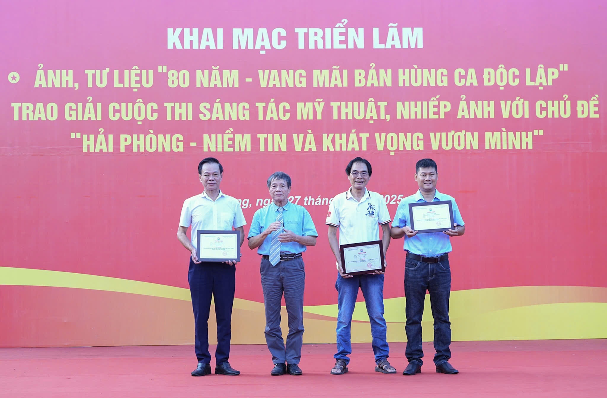 (THPL) - Chiều 27/8, Sở Văn hóa Thể thao và Du lịch Hải Phòng tổ chức khai mạc Triển lãm ảnh, tư liệu “80 năm - Vang mãi bản hùng ca độc lập” và tổng kết, trao giải Cuộc thi sáng tác mỹ thuật, nhiếp ảnh với chủ đề “Hải Phòng - niềm tin và khát vọng vươn mình”.