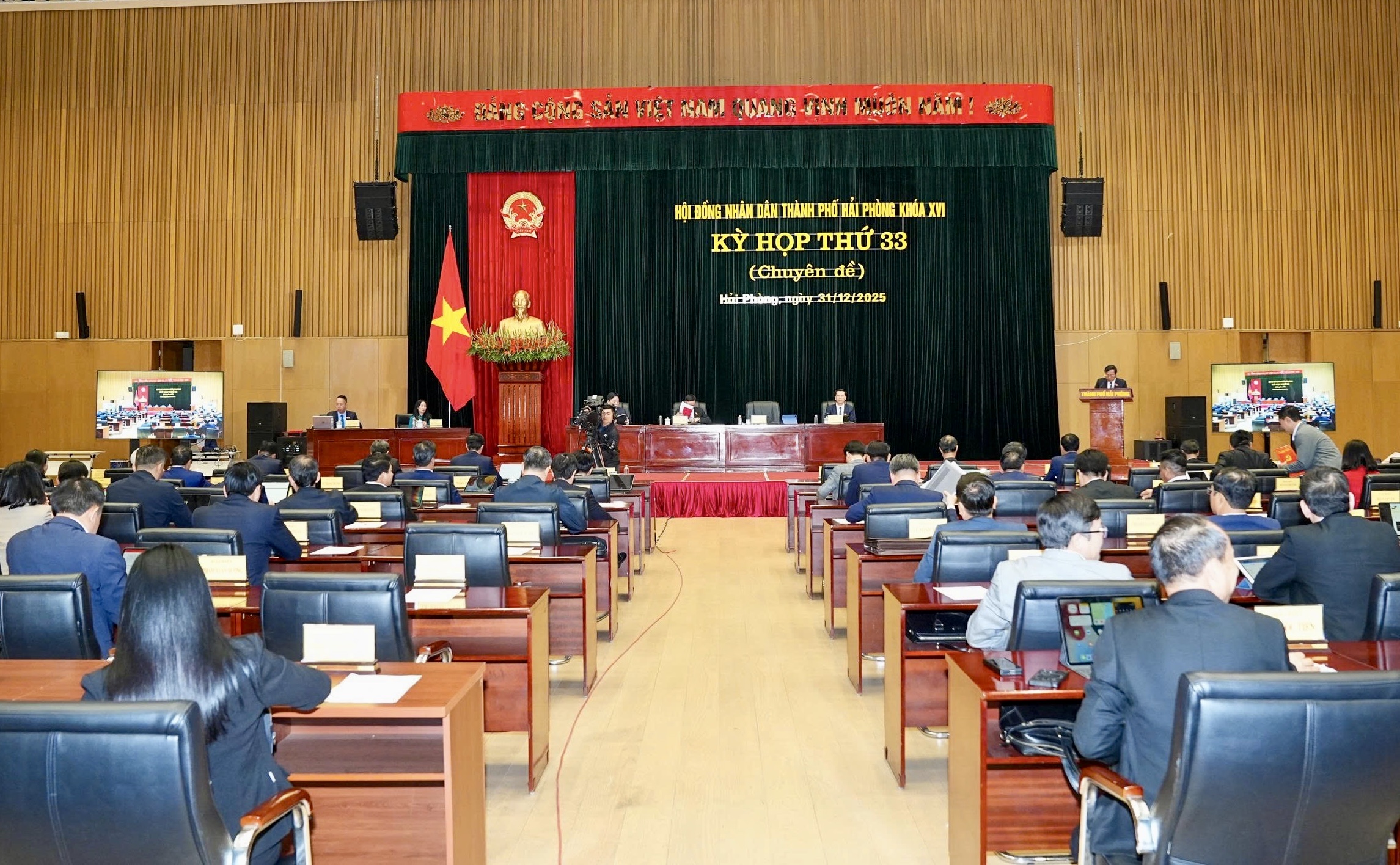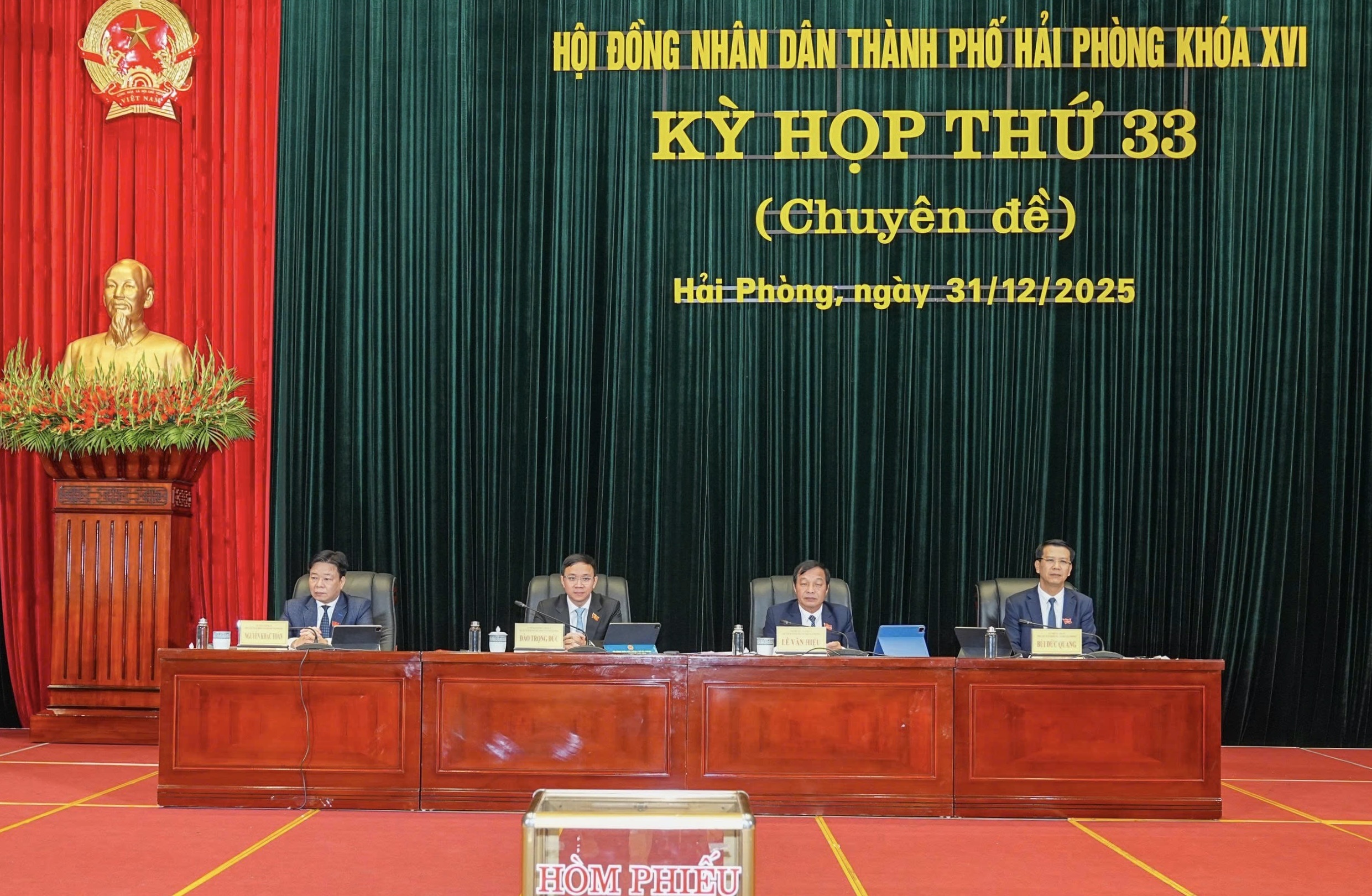 Ngày 31/12, HĐND TP. Hải Phòng tổ chức Kỳ họp thứ 33 (kỳ họp chuyên đề) HĐND thành phố khóa XVI, nhiệm kỳ 2021-2026 để thực hiện các công việc cấp thiết phát sinh từ thực tiễn trong công tác chỉ đạo, điều hành phát triển kinh tế - xã hội thành phố theo luật định.