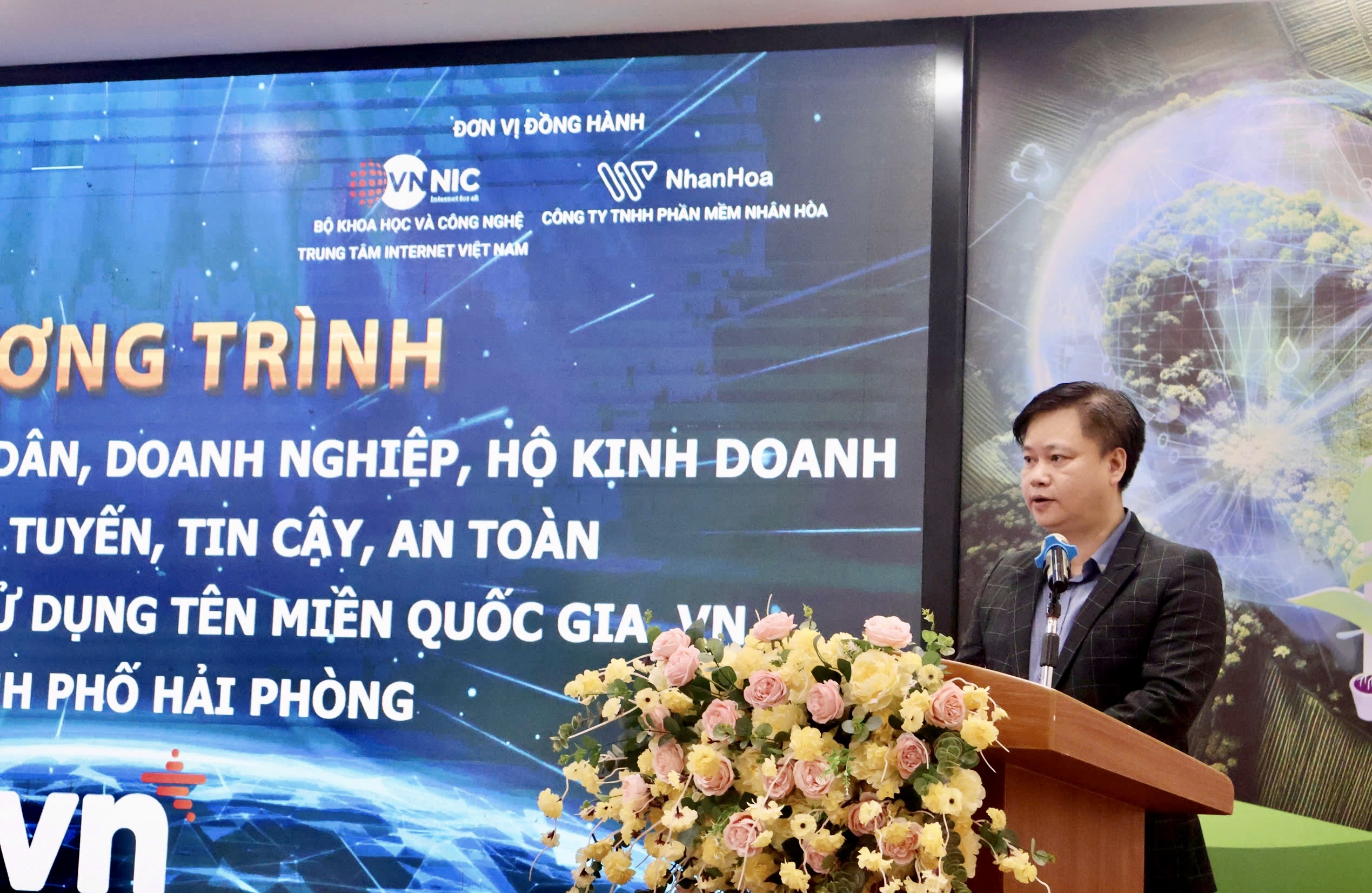 Phát biểu khai mạc Hội nghị, Phó Giám đốc Sở Khoa học và Công nghệ Hải Phòng Phạm Huy Thắng nhấn mạnh, trong giai đoạn chuyển đổi số mạnh mẽ hiện nay, hiện diện trực tuyến chính danh không chỉ là xu thế, mà là yêu cầu thiết yếu đối với doanh nghiệp, hộ kinh doanh và mỗi người dân. Việc sử dụng tên miền quốc gia “.vn” giúp bảo đảm an toàn, tin cậy trong giao dịch số, khẳng định thương hiệu Việt trên không gian mạng. Đồng thời, Chương trình còn góp phần nâng cao năng lực cạnh tranh, cải thiện xếp hạng chỉ số chuyển đổi số (DTI) và chỉ số thương mại điện tử (EBI) của TP Hải Phòng.